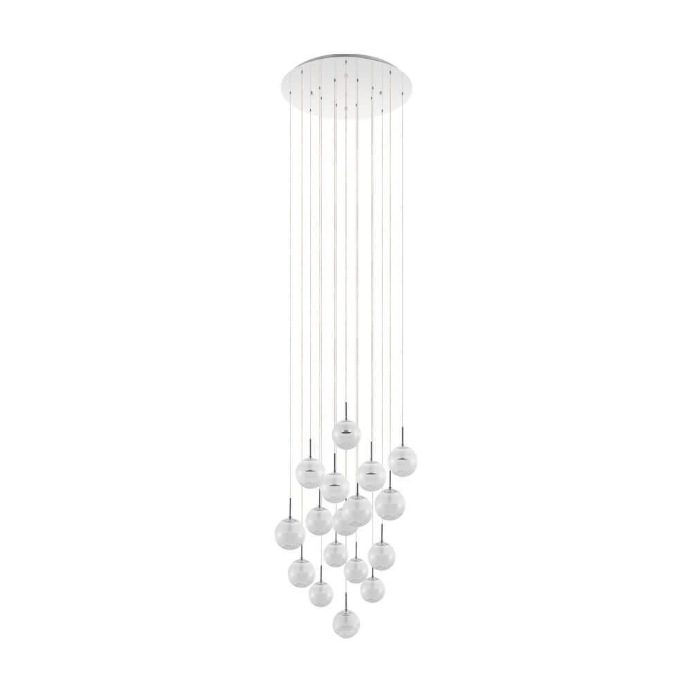 Подвесная светодиодная люстра Eglo Montefio 39547 - это стильный и современный элемент освещения, который идеально подойдет для больших залов. Произведенный в Австрии брендом Eglo, этот светильник отличается высоким качеством и надежностью.Люстра имеет диаметр 780 мм и высоту 3200 мм, что позволяет ей эффектно вписаться в интерьер помещения. Материал плафона и абажура - стекло, а основание выполнено из металла с хромированным покрытием. Цвет плафона, абажура и основания - белый, что придает светильнику элегантный и сдержанный вид.