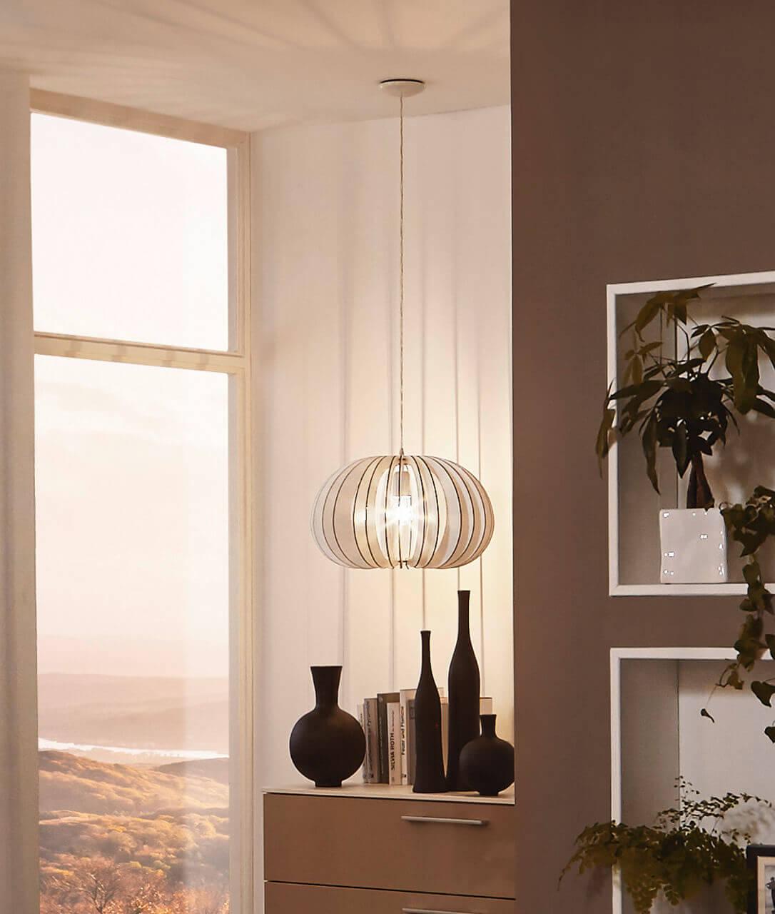 Подвесной светильник Eglo Cossano 94442 - это стильный и функциональный элемент освещения, который отлично подойдет для кухни в экостиле. Бренд Eglo из Австрии предлагает этот светильник с артикулом 94442, который имеет гарантию на два года.Светильник имеет один цоколь E27 и мощность лампы 60 Вт, что обеспечивает достаточное освещение помещения. Высота подвеса составляет 1100 мм, а диаметр плафона - 450 мм. Материал плафона из дерева, а основание выполнено из металла в белом цвете.