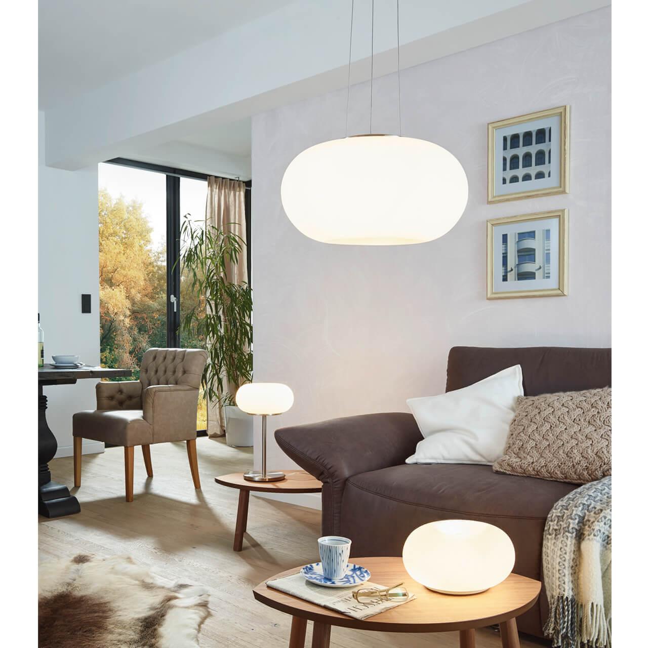 Подвесной светильник Eglo Optica 86814 - это стильный и функциональный элемент освещения, который отлично подойдет для кухни в современном интерьере.Светильник имеет два плафона из стекла белого цвета, выполненных в форме овала, что придает ему изысканный и элегантный вид. Основание из металла с никелевым покрытием дополняет общий дизайн и обеспечивает надежную фиксацию на потолке.