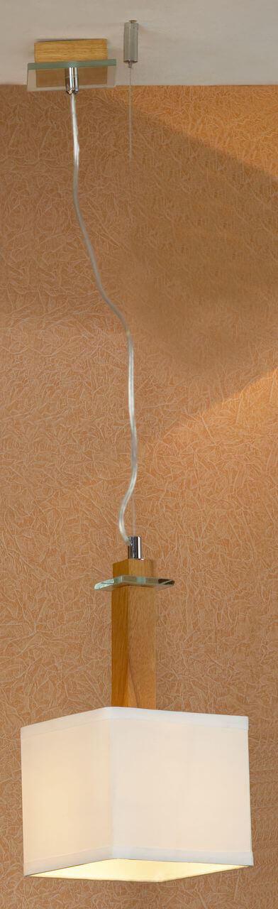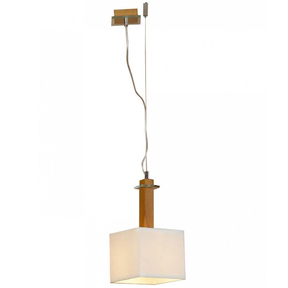 Плафон изготовлен из ткани в бежевом цвете, что придает ему изысканный вид. Основание выполнено из металла с хромированным покрытием. Плафон имеет квадратную форму, что добавляет оригинальности дизайну.