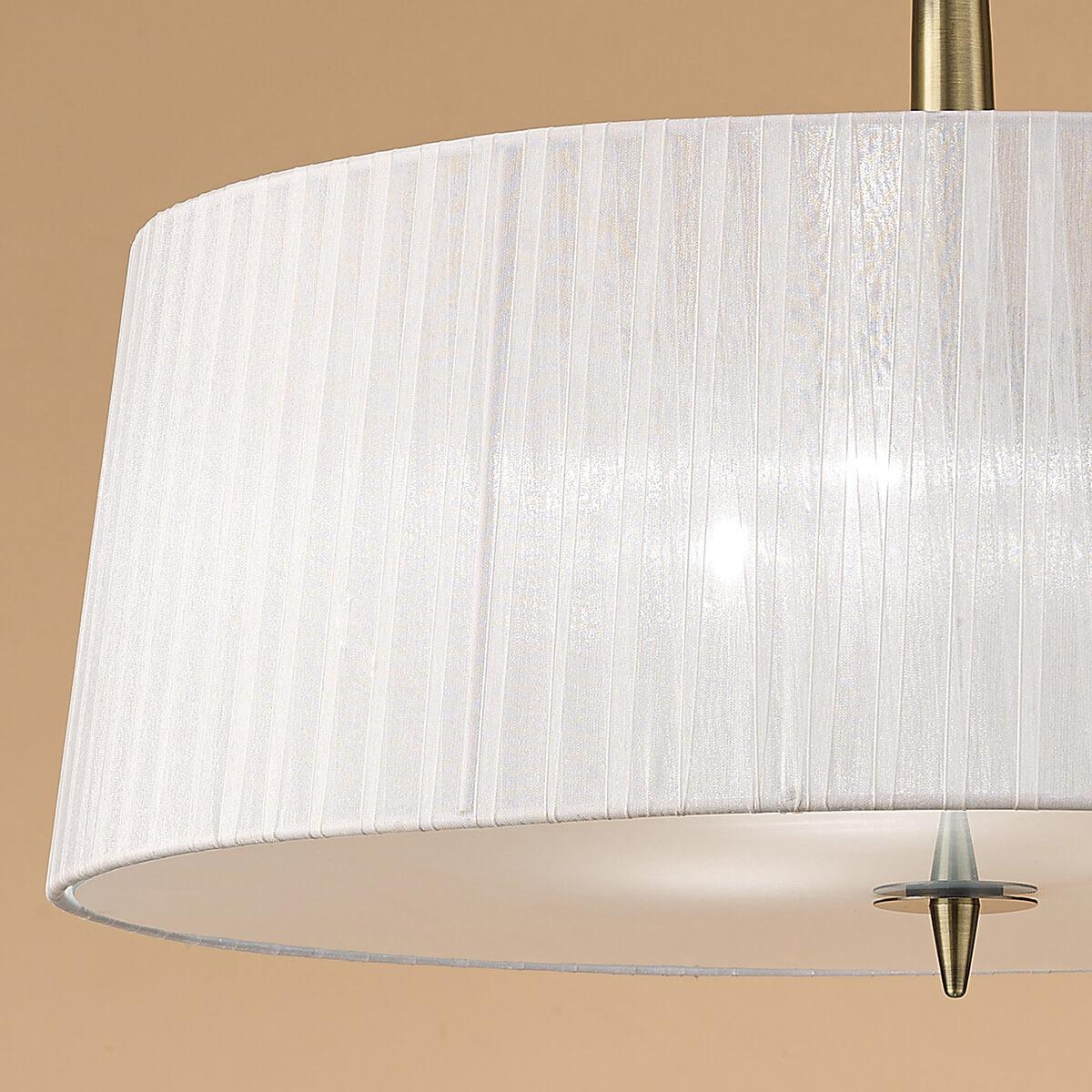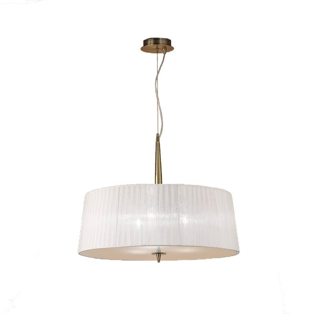 Подвесной светильник Mantra Loewe 4739 - это элегантное и стильное освещение для спальни, которое добавит изысканности и уюта вашему интерьеру.Этот подвесной светильник из коллекции Loewe от известного испанского бренда Mantra имеет высокое качество исполнения и привлекательный дизайн. Он выполнен из металла с античным латунным оттенком основания и органзы в белом цвете плафона, что придает ему изысканный и модный вид.