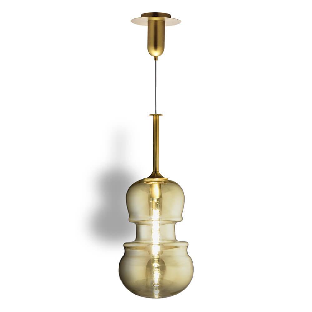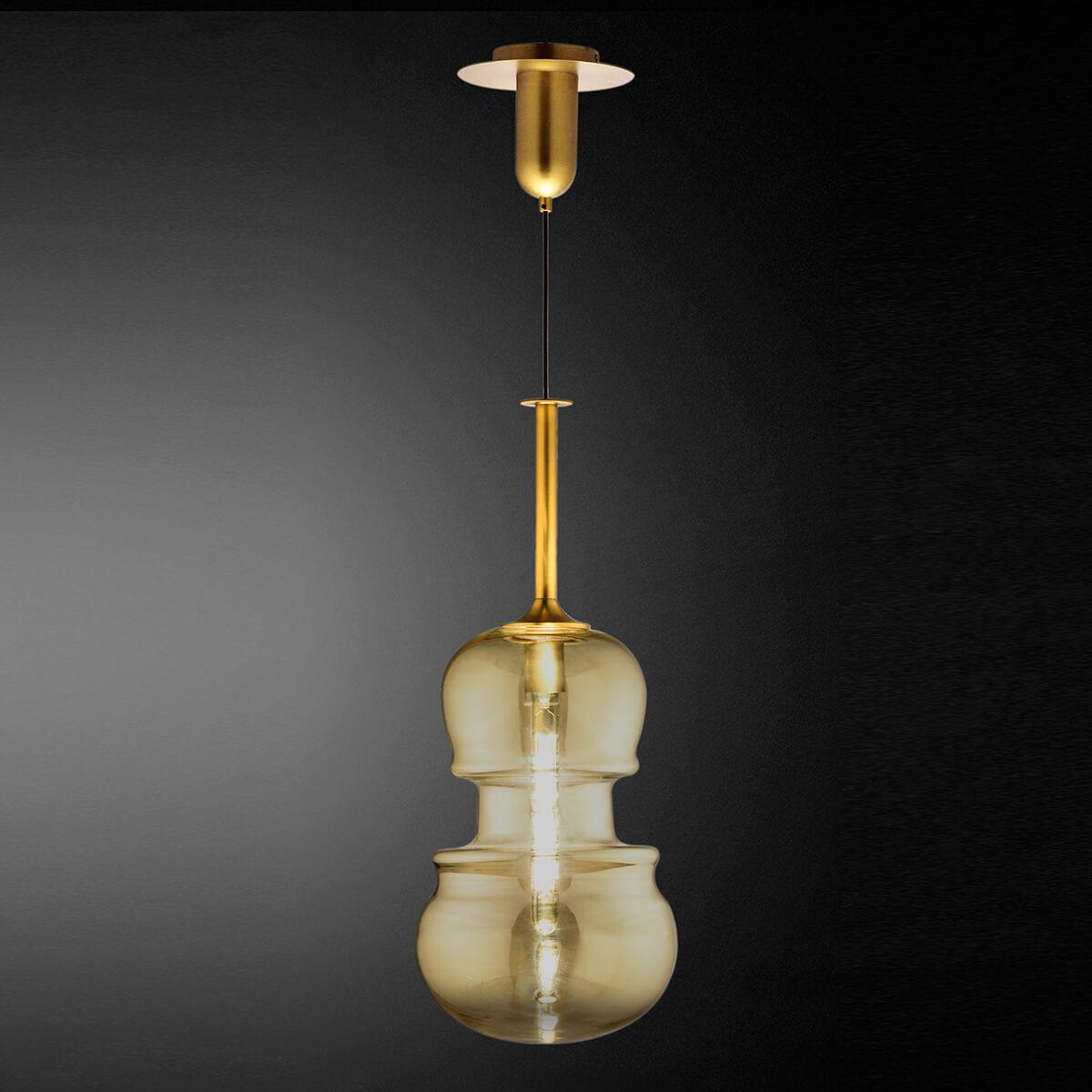 Светильник оснащен одной энергосберегающей лампой с цоколем E27 и общей мощностью 20 Вт. Высота подвеса составляет 1500 мм, диаметр плафона - 290 мм. Материал плафона и абажура - стекло, что придает светильнику изысканный вид. Цветовое исполнение в бронзовых тонах придает ему особую изысканность.