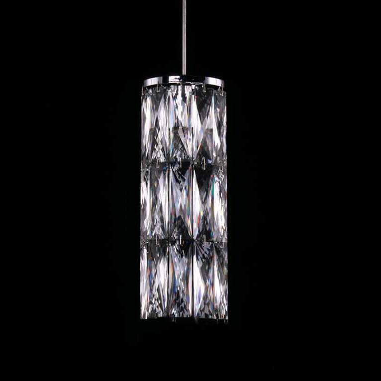 Плафон из хрусталя имеет диаметр 120 мм и цилиндрическую форму, что придает светильнику изысканный вид. Цвет плафона прозрачный, а основание выполнено из металла с хромированным покрытием.
