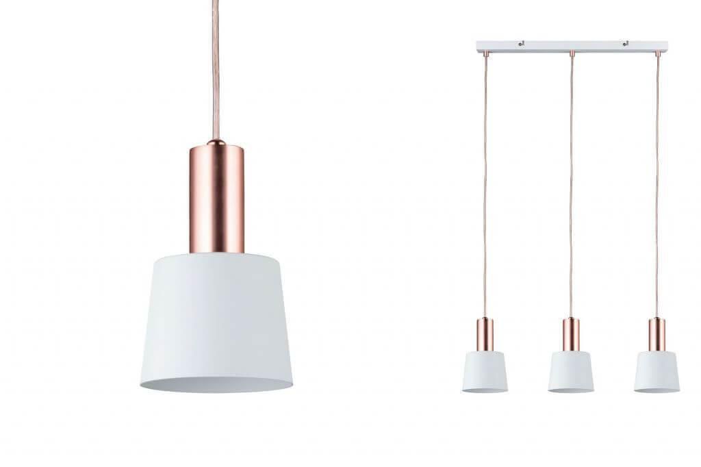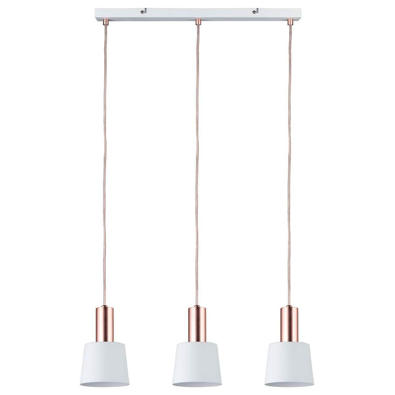 Подвесной светильник Paulmann Mare 79657 - это стильный и функциональный элемент освещения для кухни, который отличается высоким качеством и надежностью. Произведенный в Германии брендом Paulmann, этот светильник из коллекции Mare имеет скандинавский стиль, который подойдет для современных интерьеров.Светильник оснащен тремя энергосберегающими лампочками с цоколем E14 и общей мощностью 60 Вт. Высота светильника составляет 190 мм, а он устанавливается на потолок. Материал плафона и абажура - металл, цвет которых белый. Основание также выполнено из металла, окрашенного в медный цвет.