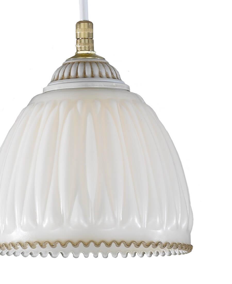 Плафон изготовлен из прочного стекла белого цвета, что придает освещению мягкость и комфорт. Основание выполнено из латуни в античном белом цвете, что придает светильнику изысканный вид.