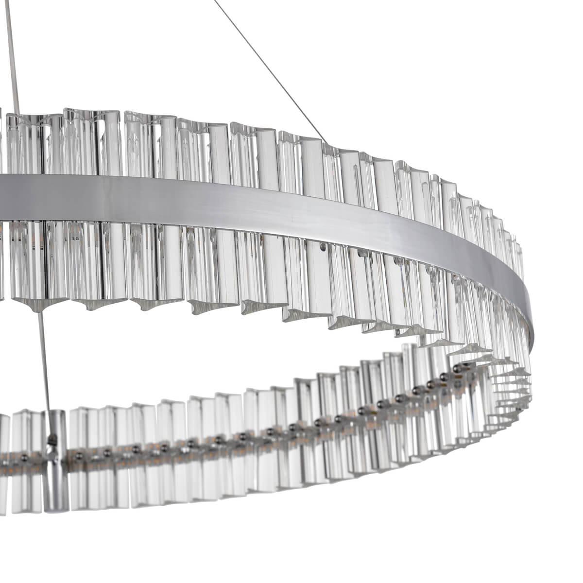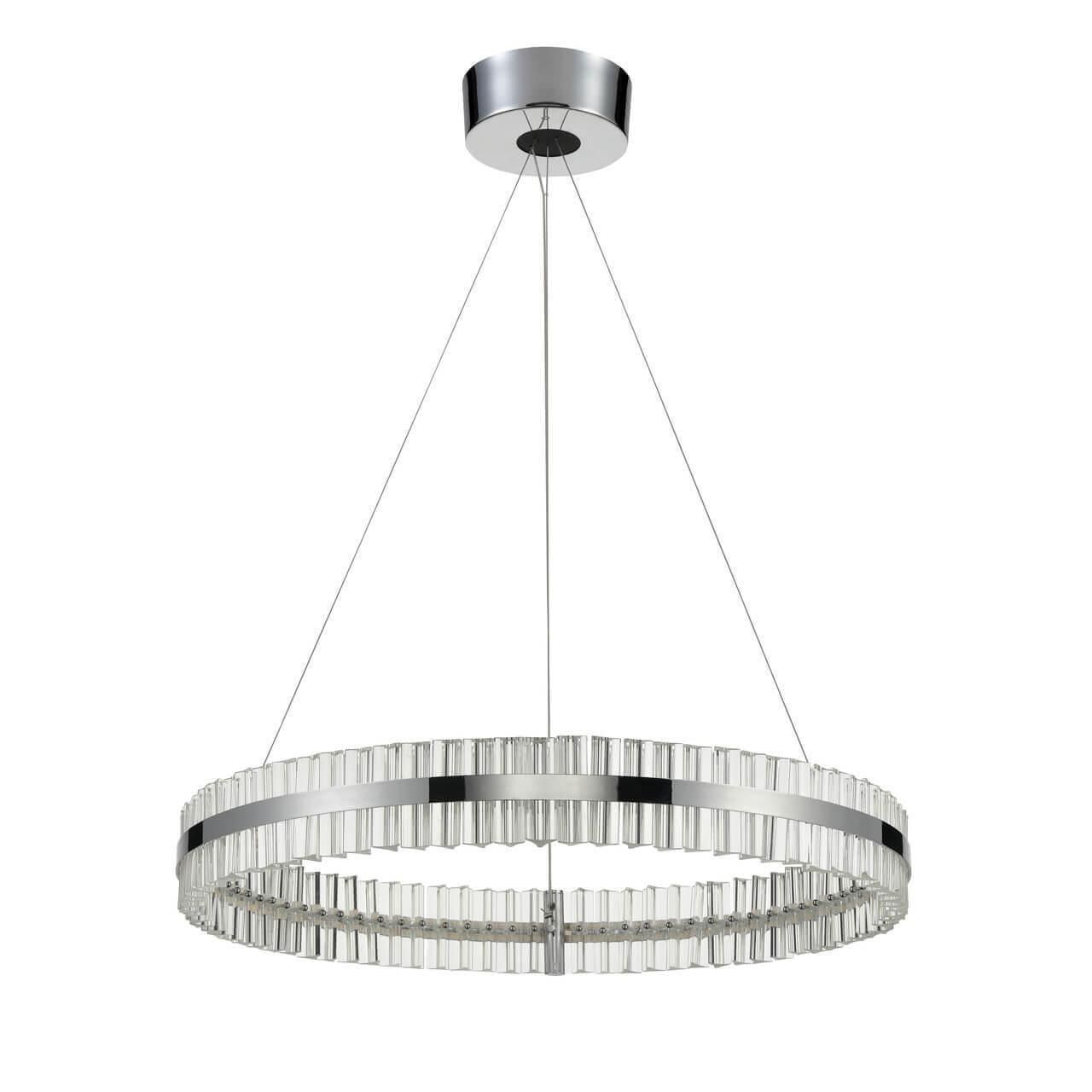 Подвесной светильник Vele Luce Faccia VL1694P02 - это изысканное итальянское изделие, которое станет украшением любого современного интерьера.Этот светильник из коллекции Faccia имеет стильный дизайн и выполнен из высококачественных материалов. Плафон из хрусталя диаметром 800 мм придает ему изысканный вид, а хромированное основание добавляет современности.