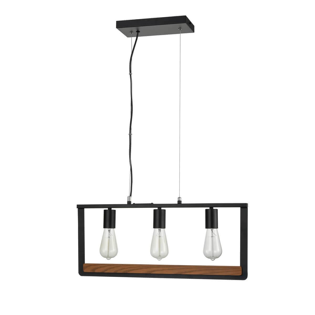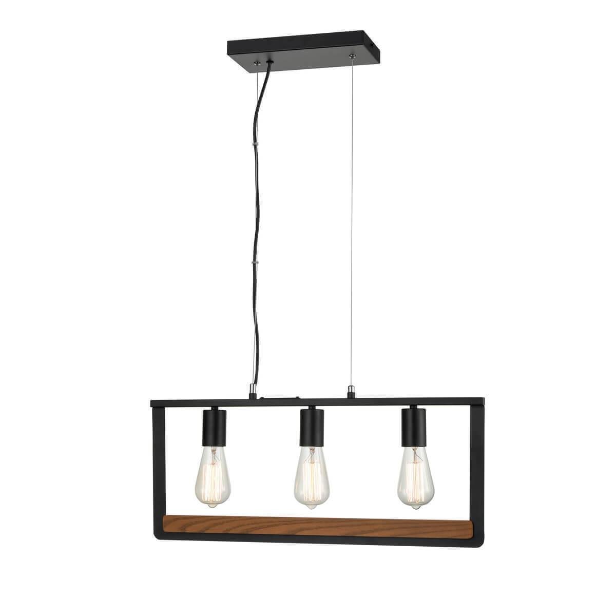 Светильник оснащен цоколем E27 и предназначен для установки на потолок. В комплекте идут три лампочки накаливания, общая мощность которых составляет 180 Вт. Материал основания - металл, цвет основания - черный, что придает светильнику элегантный и современный вид.