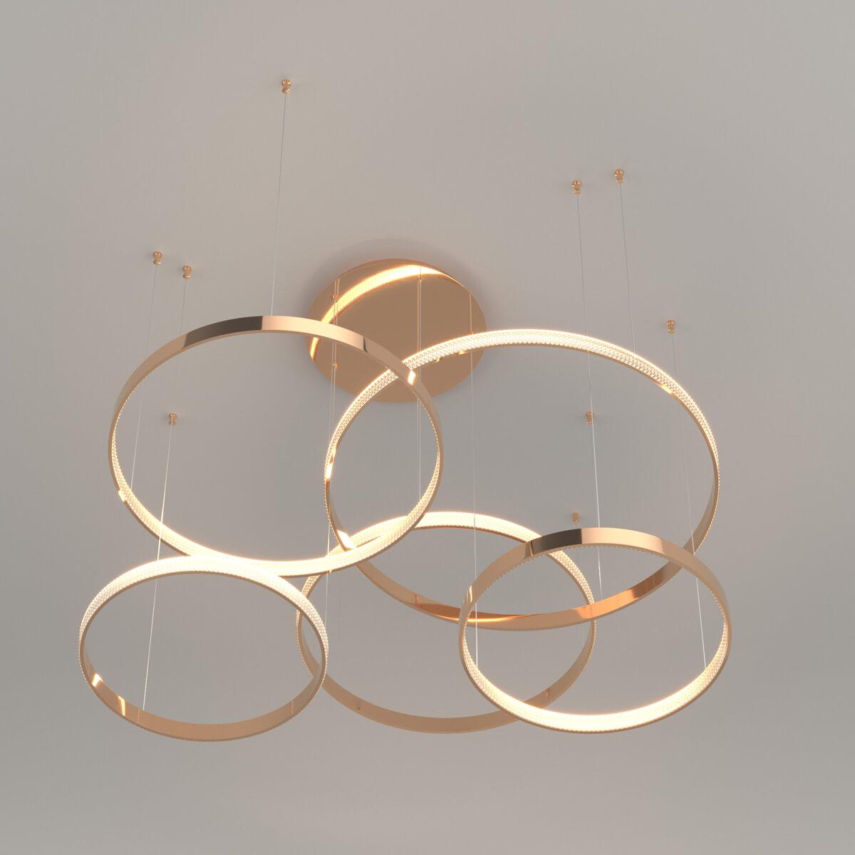 Подвесной светодиодный светильник Eurosvet Smart Posh 90275/5 медный - это стильное и современное освещение для гостиной, которое отлично впишется в интерьер любого помещения. Благодаря светодиодной лампочке общей мощностью 160 Вт, этот светильник обеспечивает яркое и равномерное освещение.Изготовленный из металла в медном цвете, светильник имеет круглую форму плафона и основание также выполнено из металла в том же цвете. Степень защиты IP20 гарантирует безопасность использования внутри помещения.