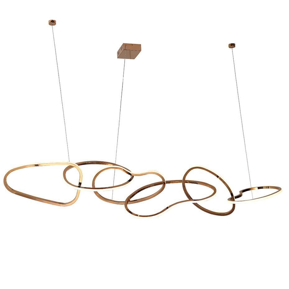 Плафон светильника выполнен из пластика, цвет плафона - золотой. Основание изготовлено из металла и имеет цвет розового золота. Светильник имеет форму овала и стильный современный дизайн. Напряжение питания - 230 В, степень защиты IP20.
