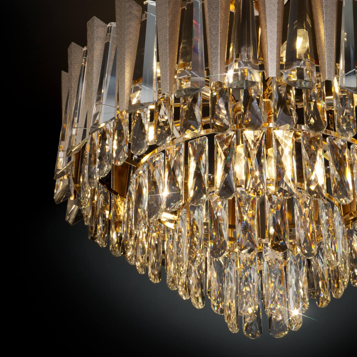 Потолочная люстра Bogates Coda 328/9 Strotskis - это изысканное освещение для гостиной в стиле арт-деко. Бренд Bogates из России представляет эту коллекцию, которая поражает своим элегантным дизайном и высоким качеством исполнения.Люстра имеет девять лампочек с цоколем E14 и общей мощностью 540 Вт. Материал плафона и абажура - хрусталь, что создает игру света и отражений, придавая помещению особую атмосферу роскоши. Диаметр люстры составляет 600 мм, а высота - 600 мм, что позволяет ей эффектно вписаться в интерьер.
