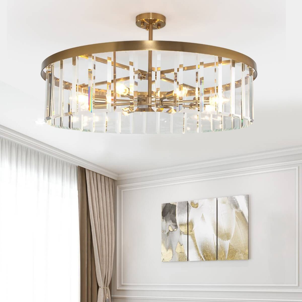Эта потолочная люстра станет отличным дополнением к интерьеру гостиной, придавая ей изысканный вид и обеспечивая комфортное освещение. Благодаря своему стильному дизайну и функциональности, она станет незаменимым элементом интерьера вашего дома.