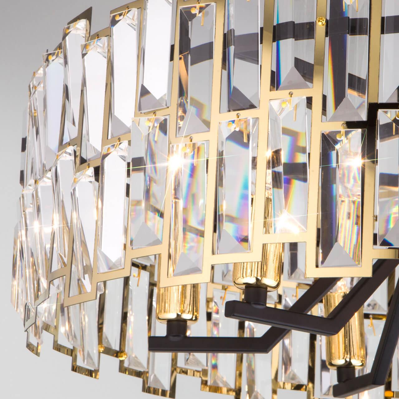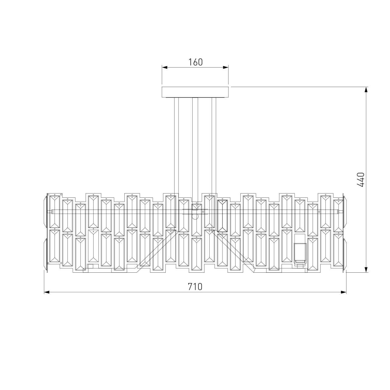 Сочетание хрусталя и металла делает эту люстру не только функциональным источником освещения, но и стильным элементом декора. Ее диаметр 710 мм и высота 450 мм позволяют установить ее в помещении любого размера, придавая ему изысканный вид.
