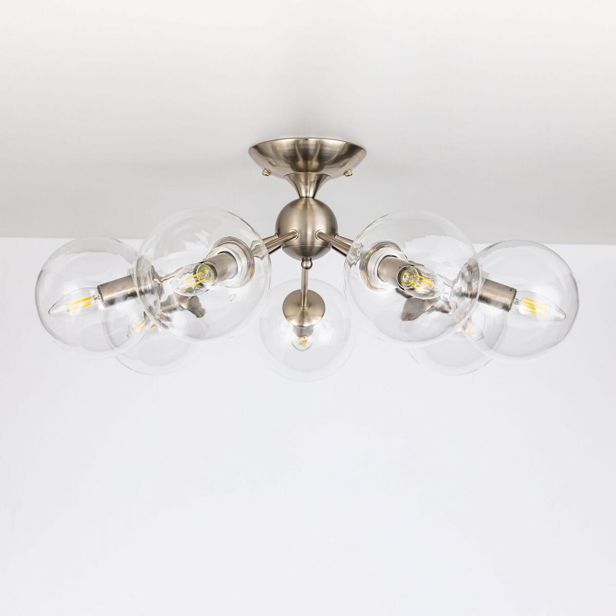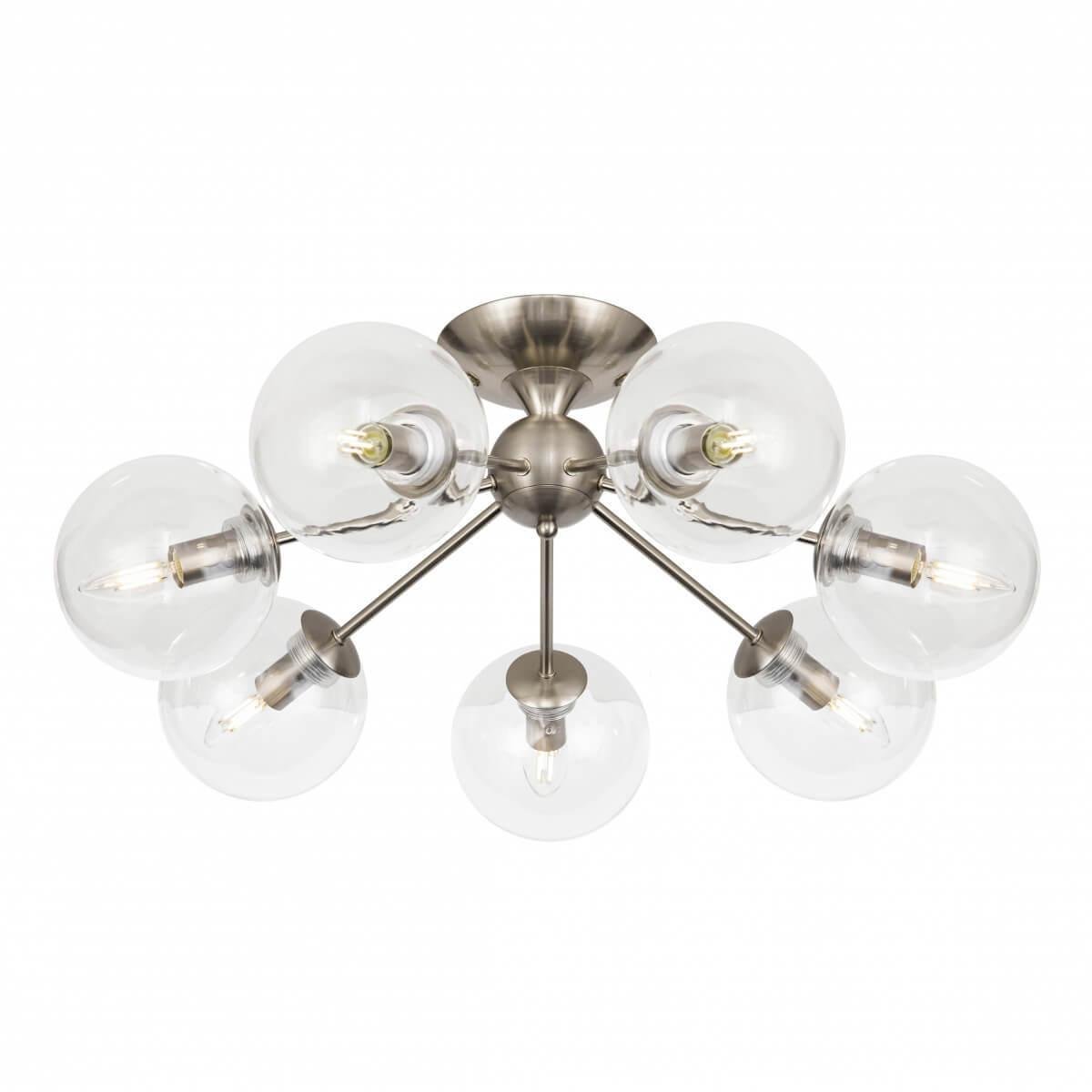 Цвет плафона и абажура - прозрачный, а цвет основания - хром. Форма плафона - шар, что создает эффектное освещение в комнате. Напряжение работы люстры - 230 В, степень защиты IP20.