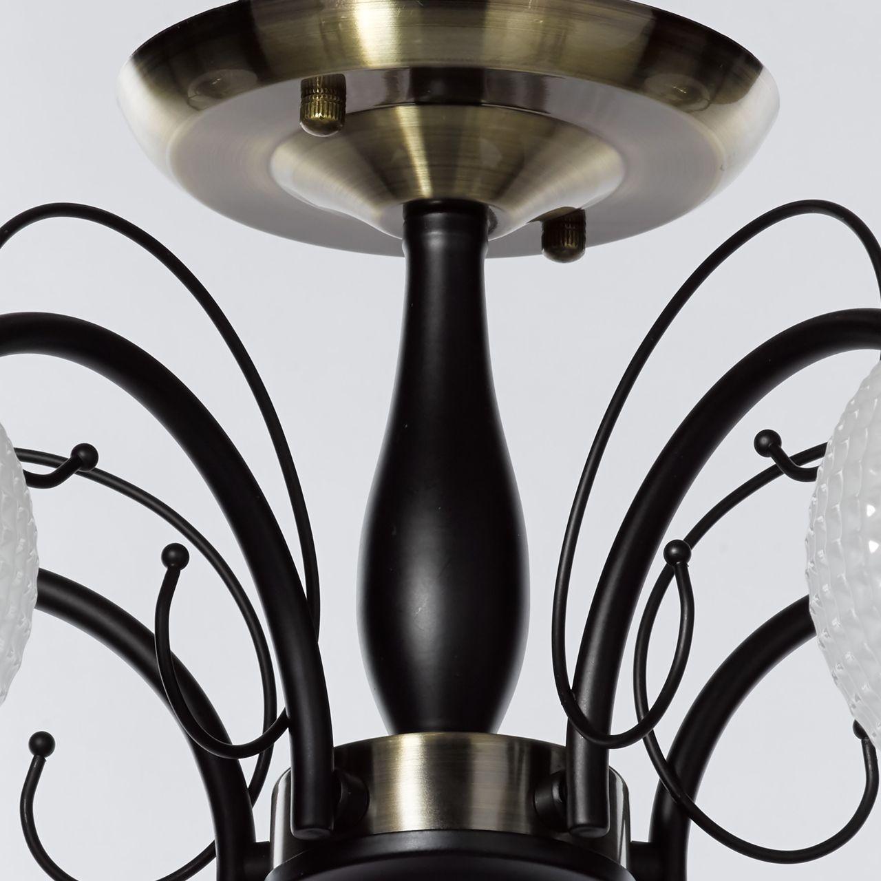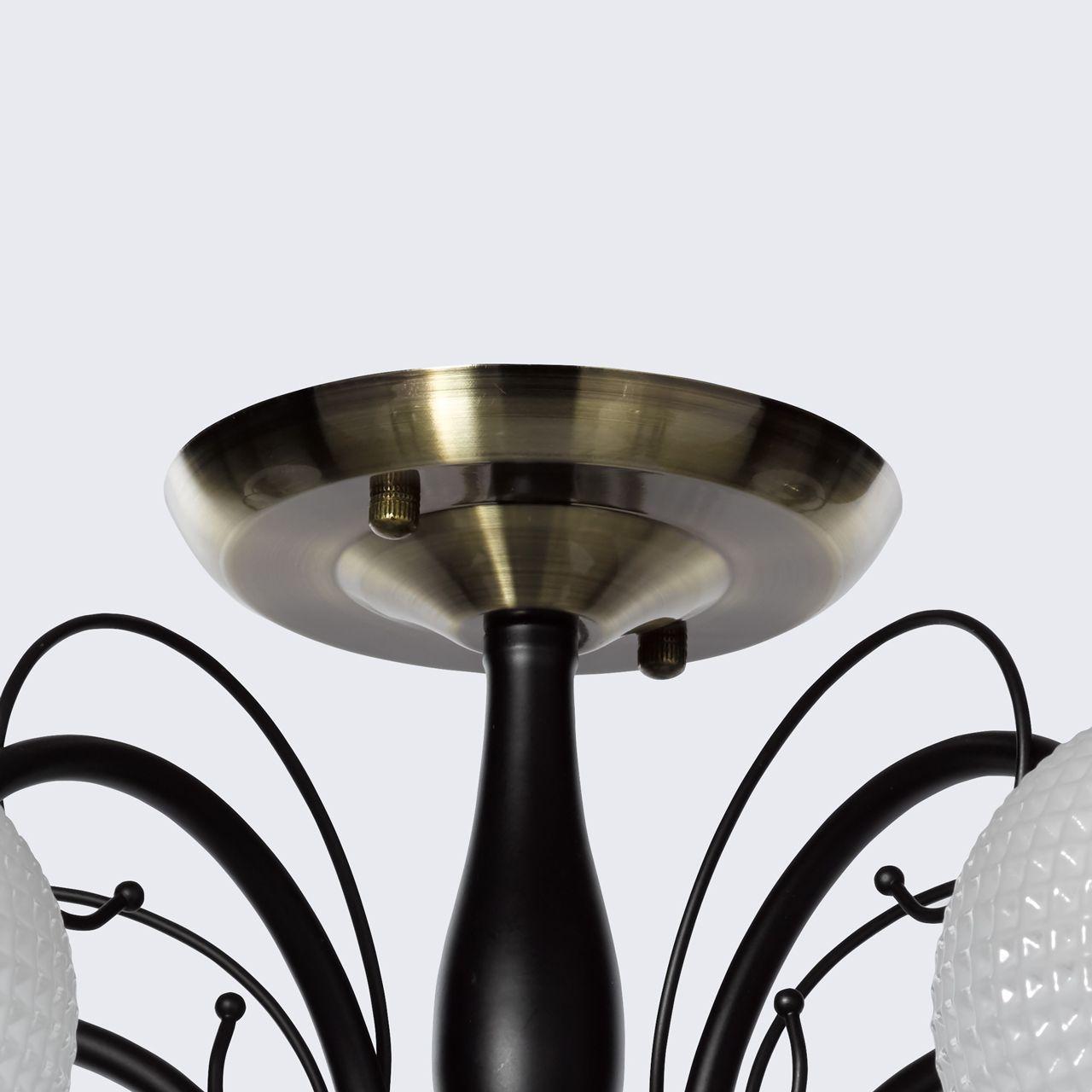 Плафон и абажур изготовлены из стекла белого цвета, что придает люстре элегантный и изысканный вид. Диаметр плафона составляет 610 мм, а высота - 240 мм. Основание выполнено из черного металла, что придает конструкции надежность и прочность.