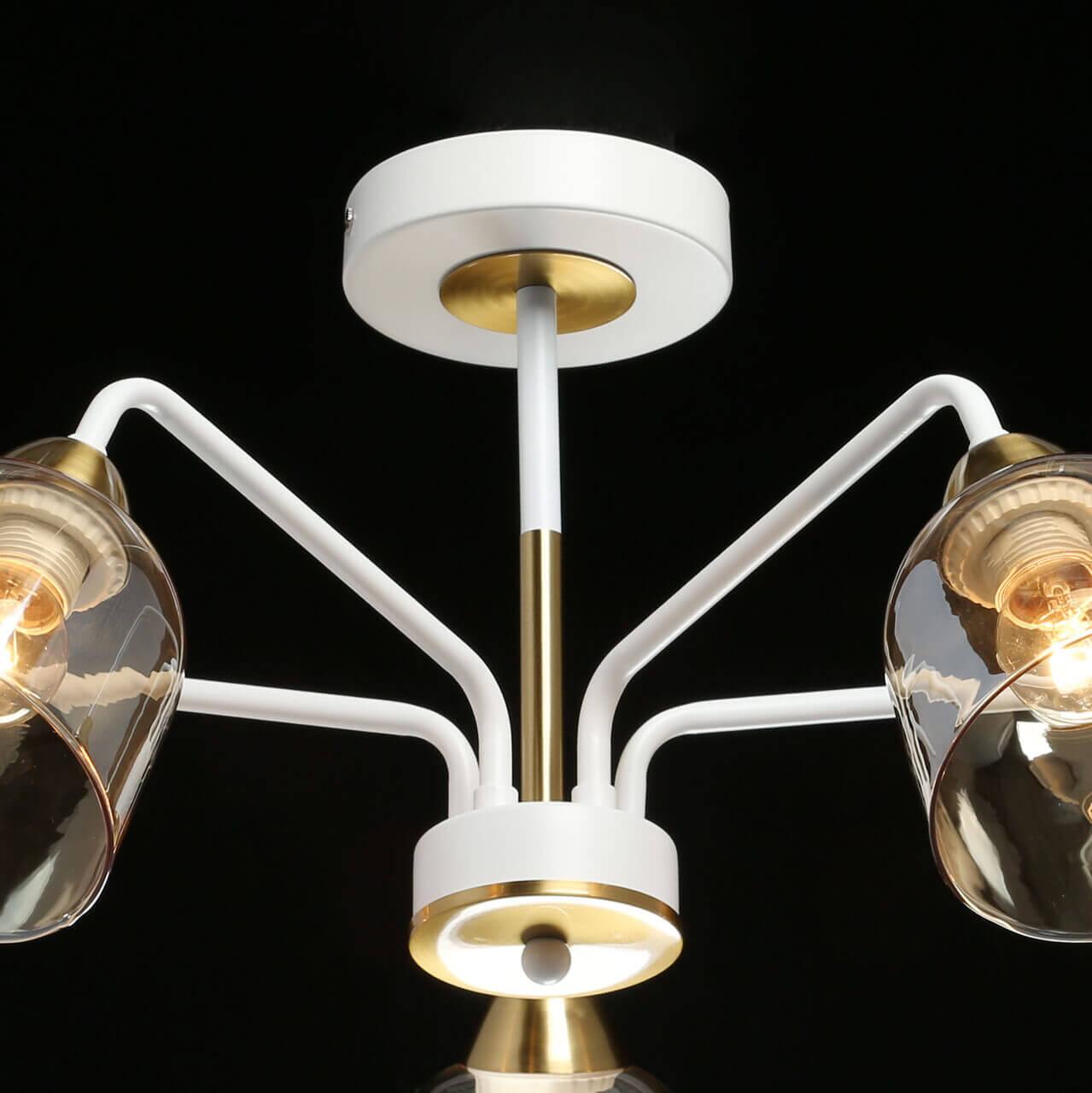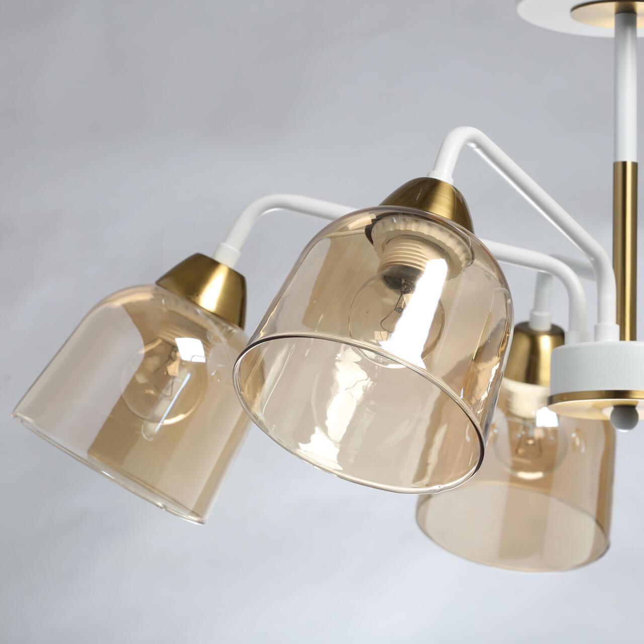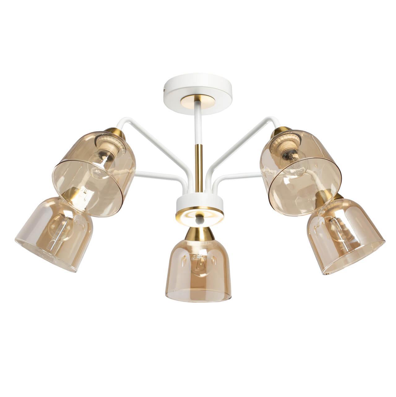 Потолочная люстра De Markt City Альфа 324017205 - это элегантное и стильное освещение для кухни, которое привнесет в интерьер нотку современности. Бренд De Markt из Германии предлагает эту потолочную люстру с артикулом 324017205, обеспечивая гарантию на товар в течение 12 месяцев.Люстра из коллекции Альфа имеет пять плафонов из стекла цвета шампань, которые создают приятное и мягкое освещение. Материал основания из металла выполнен в белом цвете, что придает изделию легкость и изящность. Диаметр люстры составляет 650 мм, а высота - 310 мм.