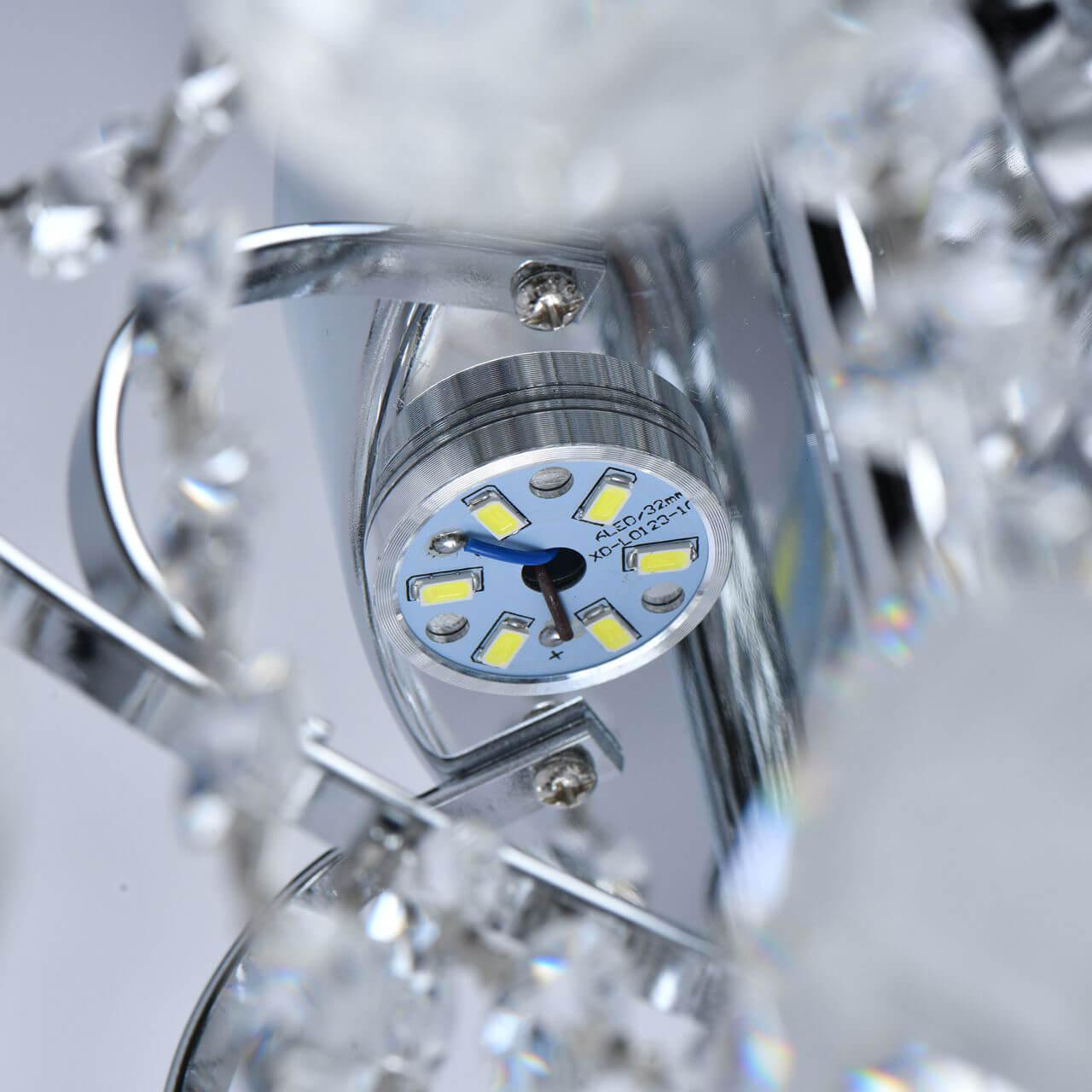 Люстра оснащена цоколем E27 для ламп накаливания мощностью до 60 Вт каждая. Общая мощность составляет 504 Вт, что обеспечивает достаточное освещение для больших помещений. Материал основания - металл с отделкой под хром, что придает изделию элегантный и современный вид.