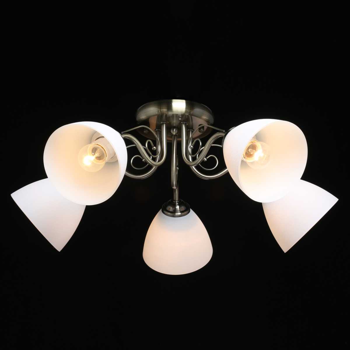 Потолочная люстра De Markt City Грация 677012705 - это элегантное и стильное освещение для спальни, которое добавит изысканности и уюта вашему интерьеру.Эта потолочная люстра из коллекции Грация от бренда De Markt имеет пять плафонов из стекла в форме конусов, окрашенных в белый цвет. Основание изготовлено из металла и имеет античную бронзовую отделку, что придает изделию изысканный вид.