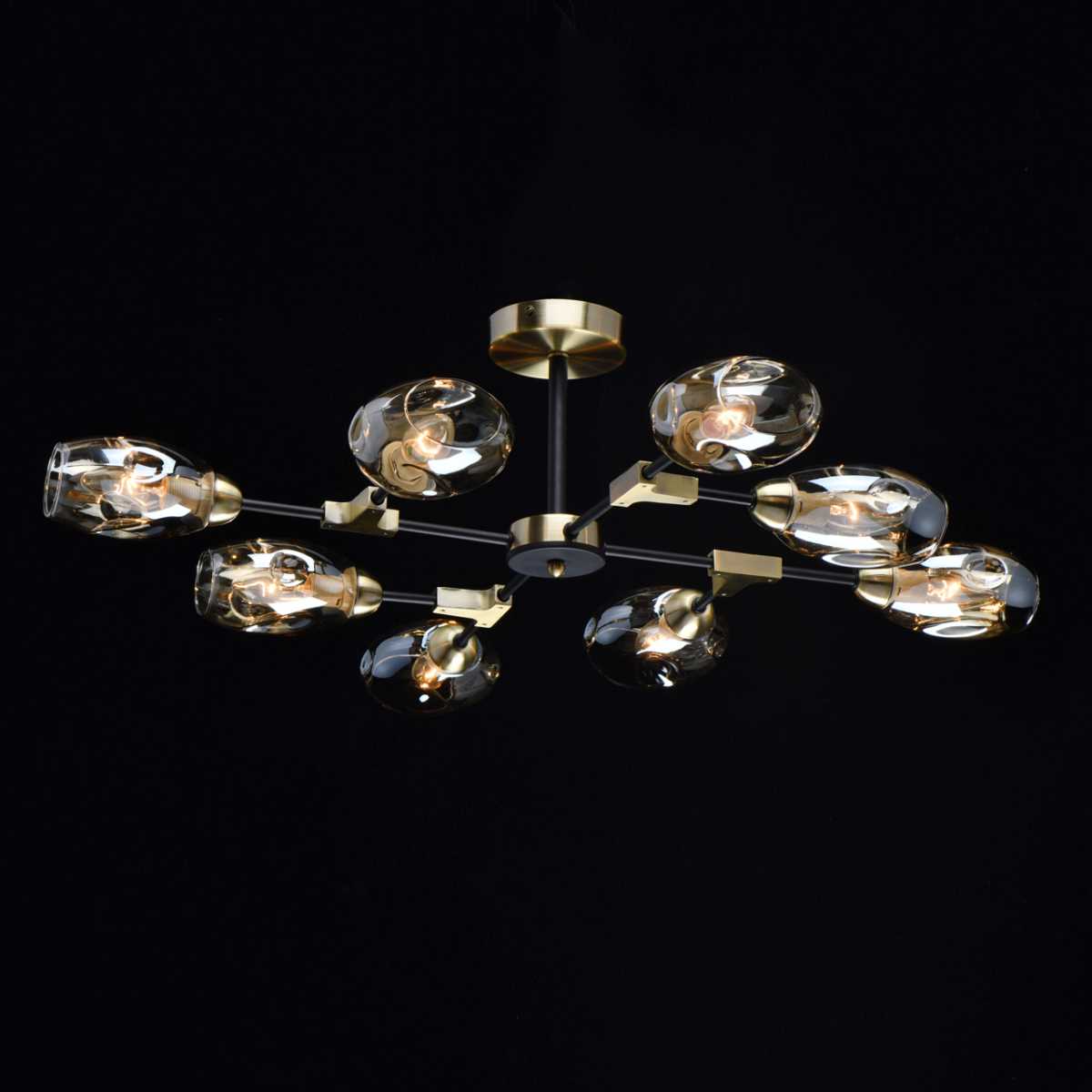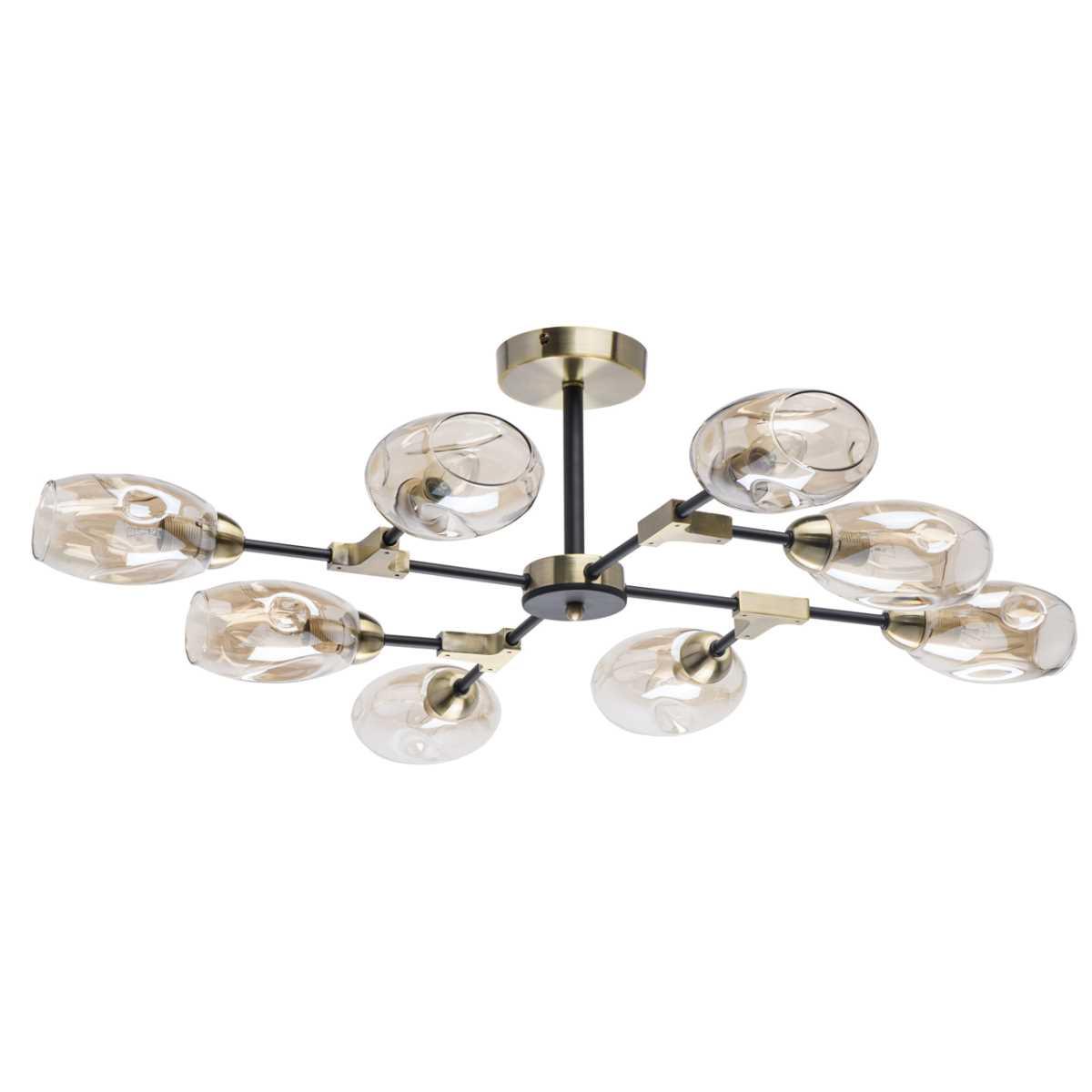 Потолочная люстра De Markt Гамбург 605012208 - это элегантное и стильное освещение для гостиной в лофт стиле. Выполненная из высококачественных материалов, данная люстра сочетает в себе функциональность и изысканный дизайн.Люстра имеет 8 плафонов из прозрачного стекла, которые создают приятное и равномерное освещение в помещении. Основание из металла с отделкой под латунь придает изделию дополнительную прочность и надежность.