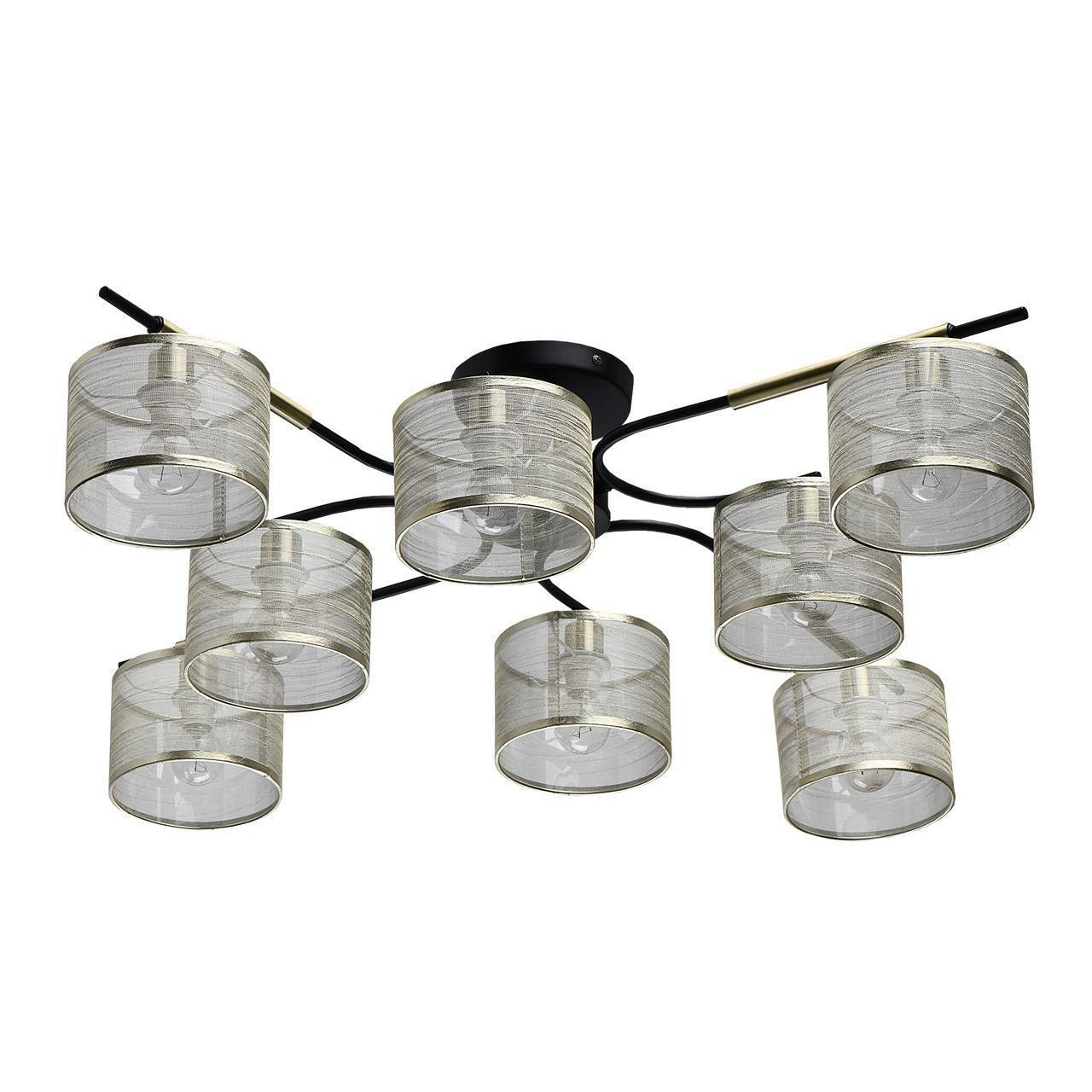 Этот светильник предназначен для установки на потолок и оснащен восемью лампочками с цоколем E14. Общая мощность составляет 320 Вт, что обеспечивает достаточное освещение помещения. Лампы накаливания обеспечивают теплый свет, создавая уютную атмосферу в комнате.