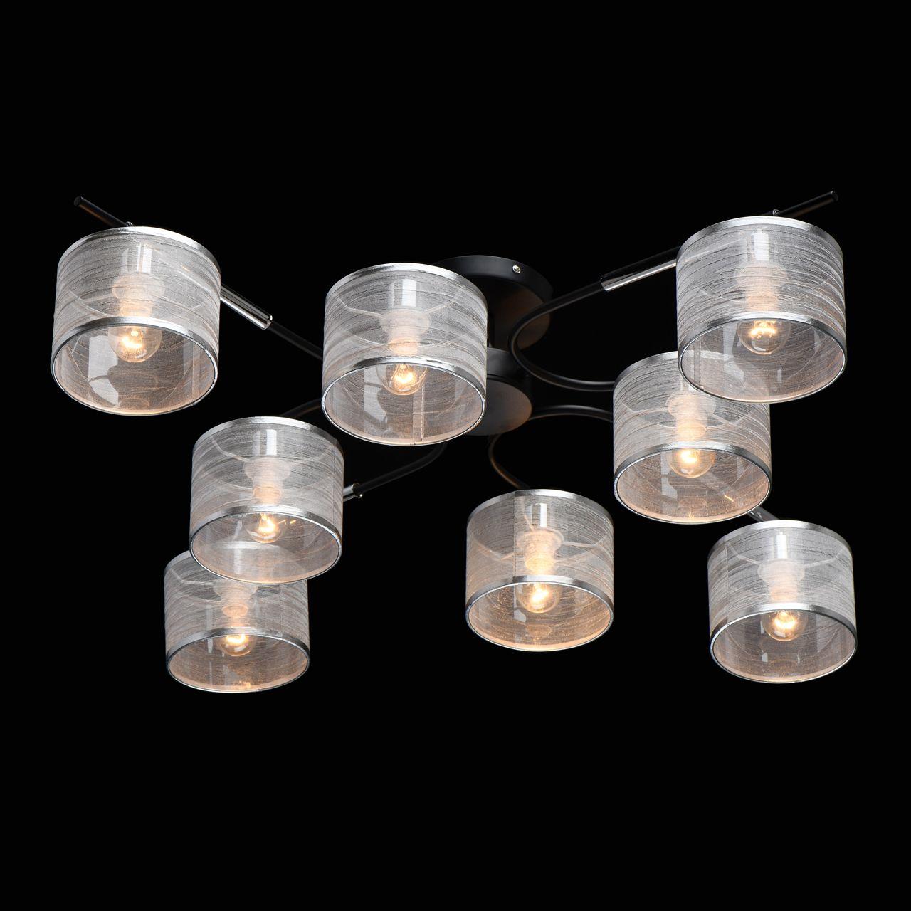 Потолочная люстра De Markt Конрад 667011908 - это элегантное и стильное освещение для спальни, которое добавит уют и комфорт в интерьер помещения. Бренд De Markt из Германии предлагает эту потолочную люстру с артикулом 667011908, которая станет отличным дополнением к современному дизайну комнаты.Люстра имеет 8 плафонов из ткани в цвете серебра, что придает ей изысканный вид. Основание из металла выполнено в черном цвете, что создает контраст и придает изделию стойкость и надежность. Высота люстры составляет 250 мм, а общая мощность 320 Вт, что обеспечивает достаточное освещение для помещения.
