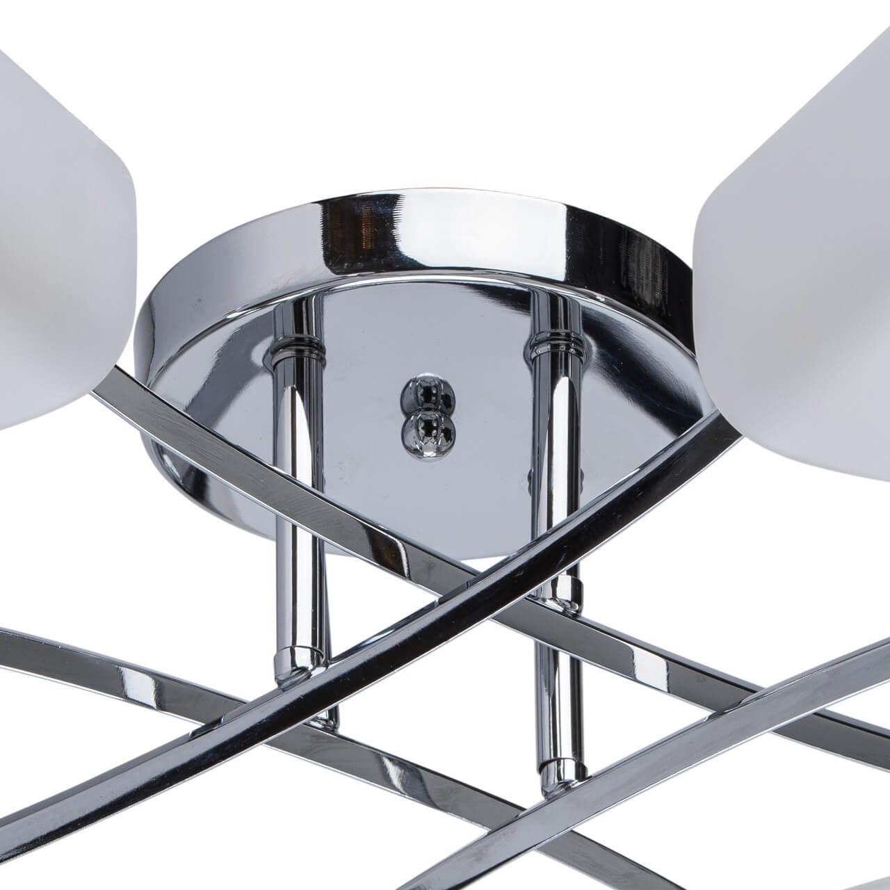 Цвет плафона и абажура - белый, что позволяет лучу света мягко рассеиваться по комнате, создавая уютную атмосферу. Люстра имеет степень защиты IP20, что обеспечивает защиту от пыли и влаги.