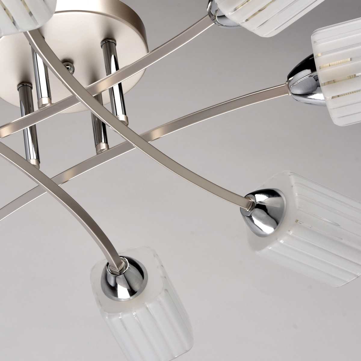 Этот элемент освещения имеет 8 цоколей типа E14, что позволяет использовать лампочки мощностью до 60 Вт каждая. Общая мощность люстры составляет 480 Вт, обеспечивая достаточное освещение помещения. Диаметр плафона составляет 700 мм, а высота - 180 мм, что делает эту люстру идеальным выбором для помещений с высокими потолками.