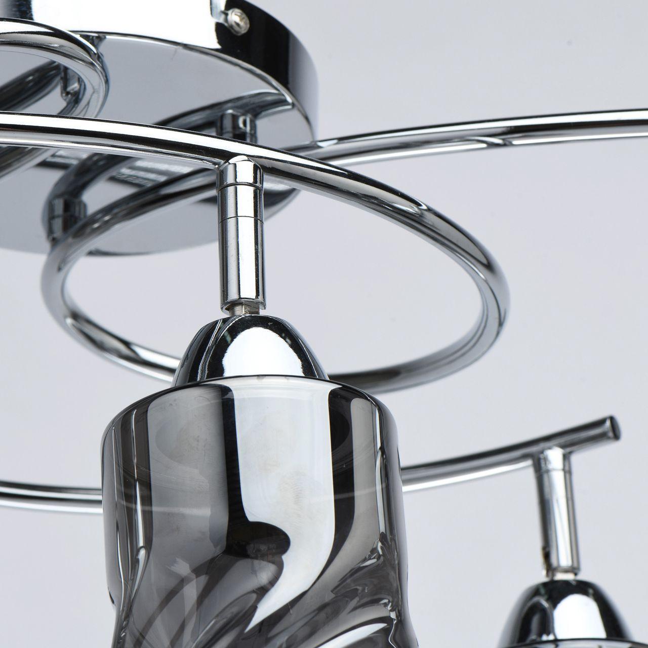 Эта потолочная люстра устанавливается на потолок и имеет степень защиты IP20. Она идеально подойдет для освещения гостиной, создавая уютную атмосферу и при этом являясь стильным элементом декора. Материалы, использованные в изготовлении - стекло и металл, обеспечивают долгий срок службы изделия.