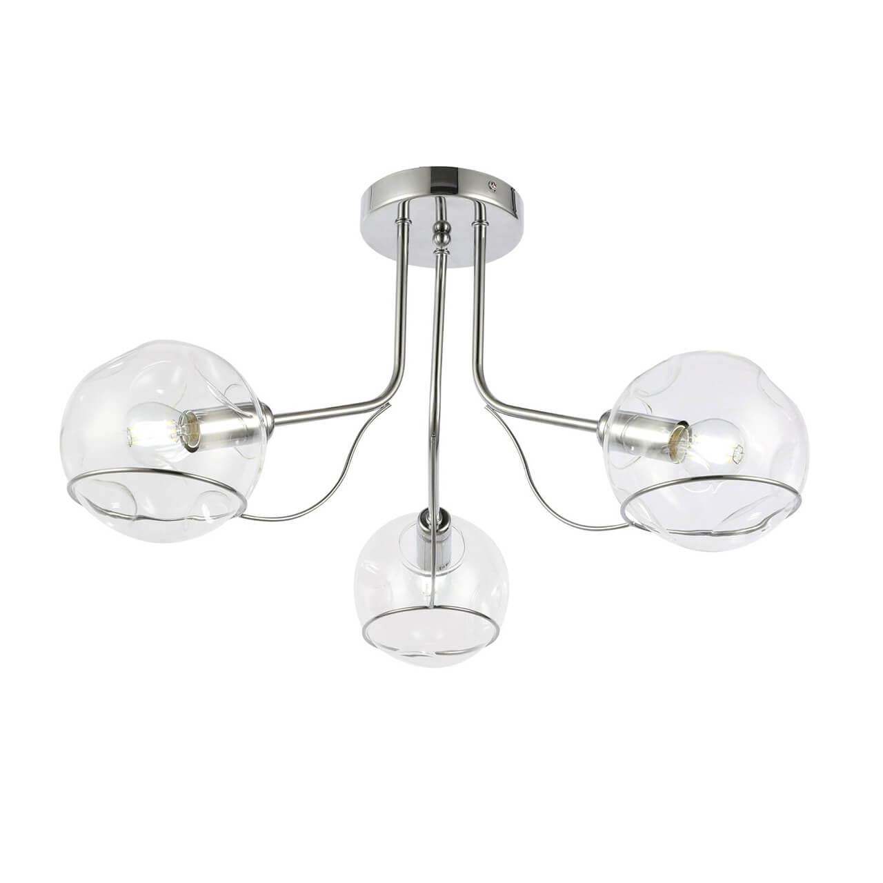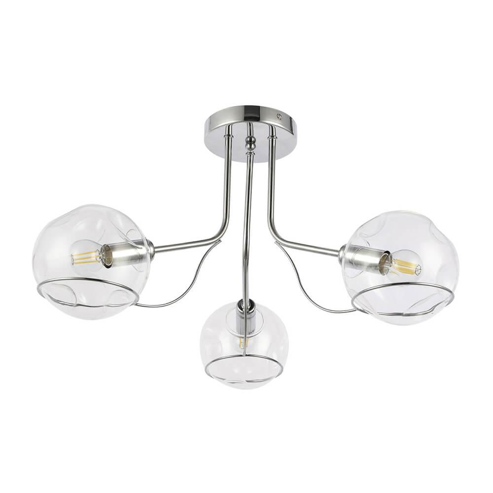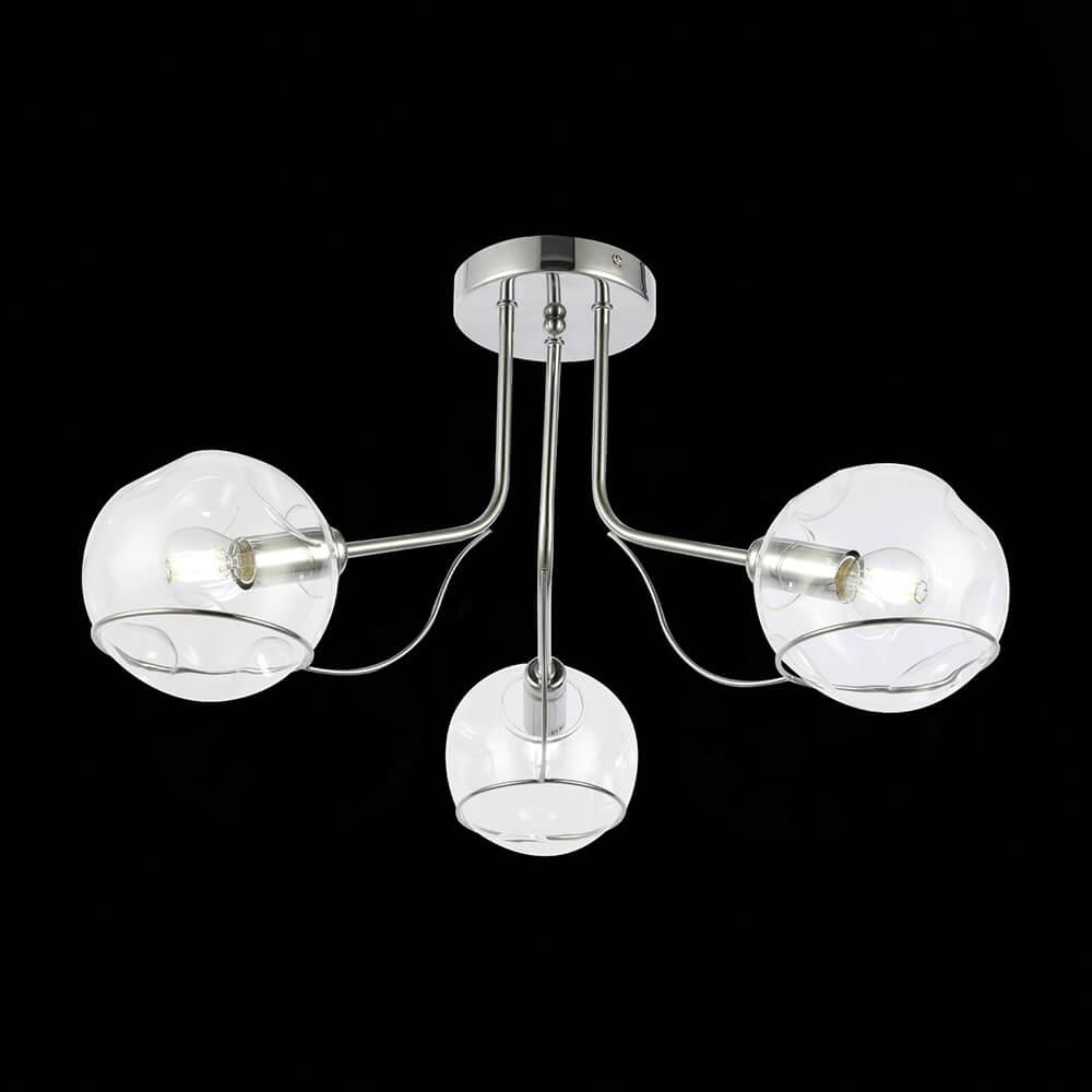Плафон и абажур выполнены из прозрачного стекла, что придает люстре изысканный вид. Основание изготовлено из металла с отделкой под хром, что придает изделию дополнительный блеск и элегантность. Цвет плафона и абажура также хромированный, что гармонично сочетается с общим стилем люстры.
