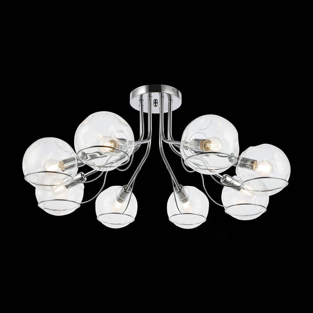 Цвет плафона и абажура - прозрачный, что позволяет свету равномерно распространяться по всему помещению. Люстра Evoluce Baca SLE102502-08 подходит для установки на потолок и имеет степень защиты IP20. Она работает от напряжения 220-240 В и имеет форму шара, что делает ее не только функциональным, но и декоративным элементом интерьера.