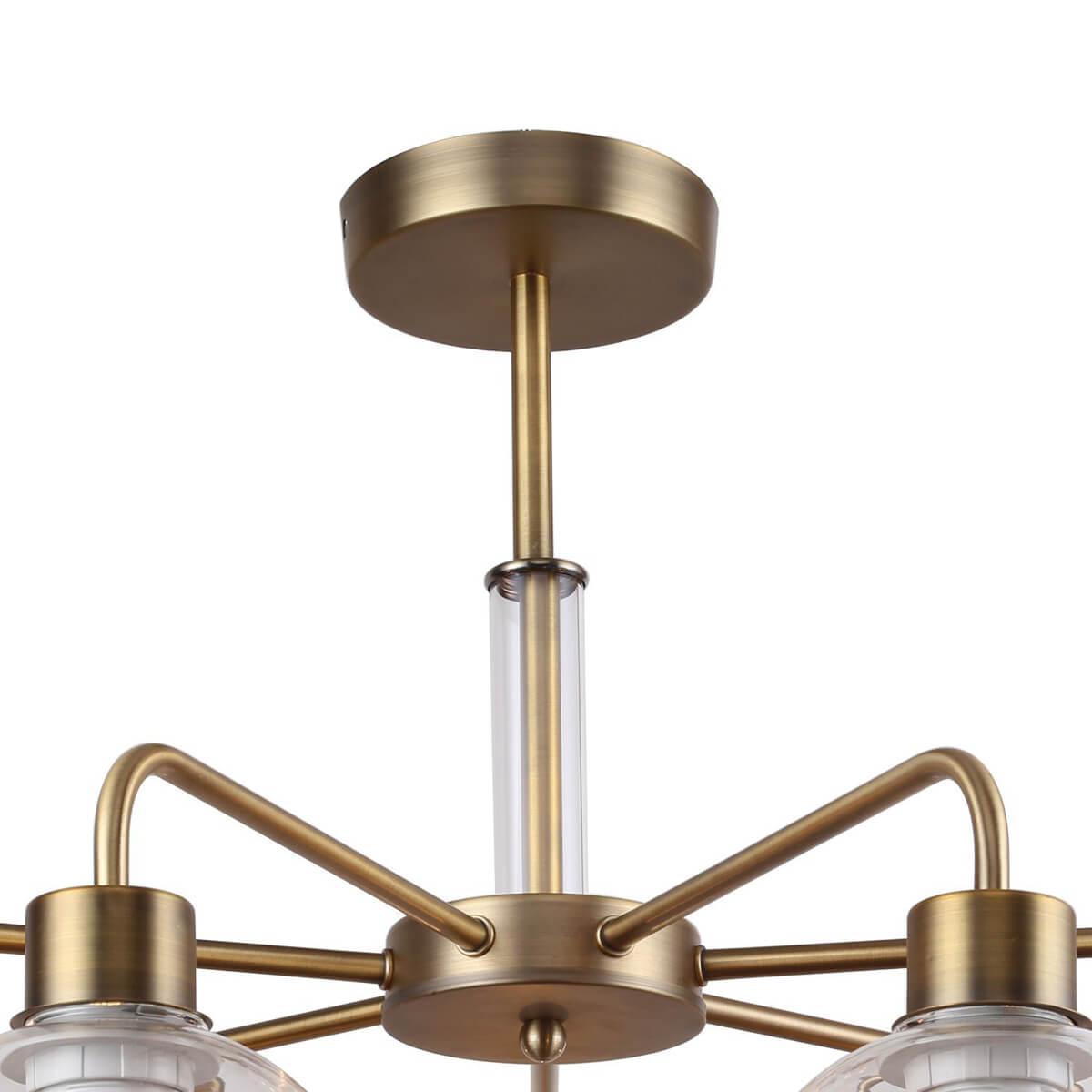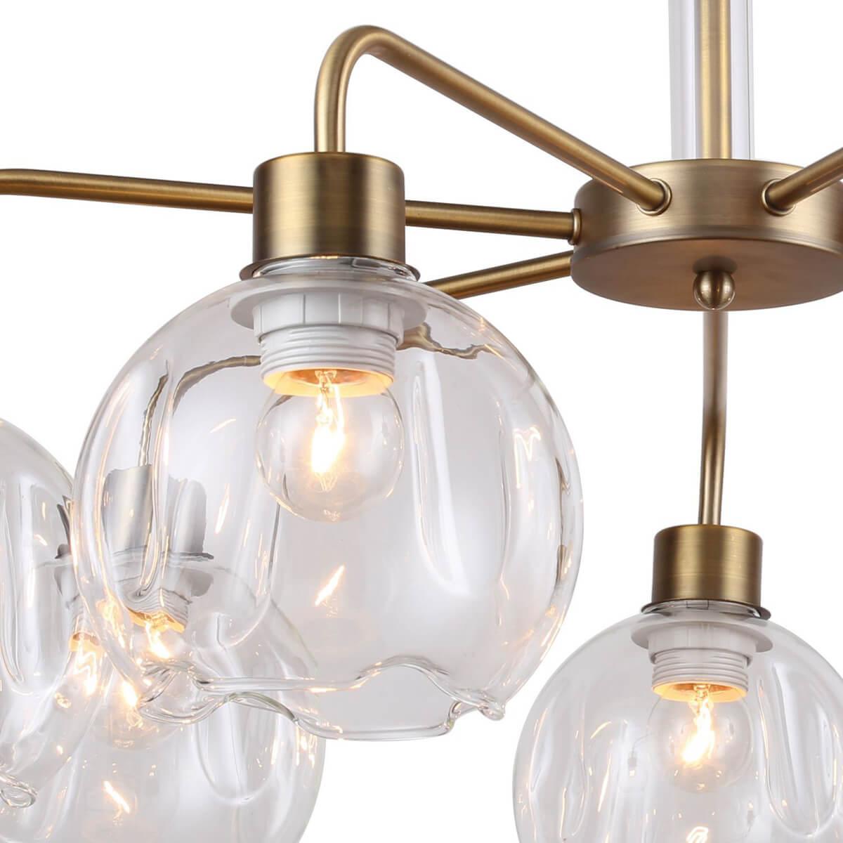Эта потолочная люстра идеально впишется в современный интерьер гостиной, создавая уютную атмосферу и подчеркивая стиль помещения. Бронзовый цвет основания придает изделию изысканный вид, а стеклянный плафон добавляет нотку изысканности.