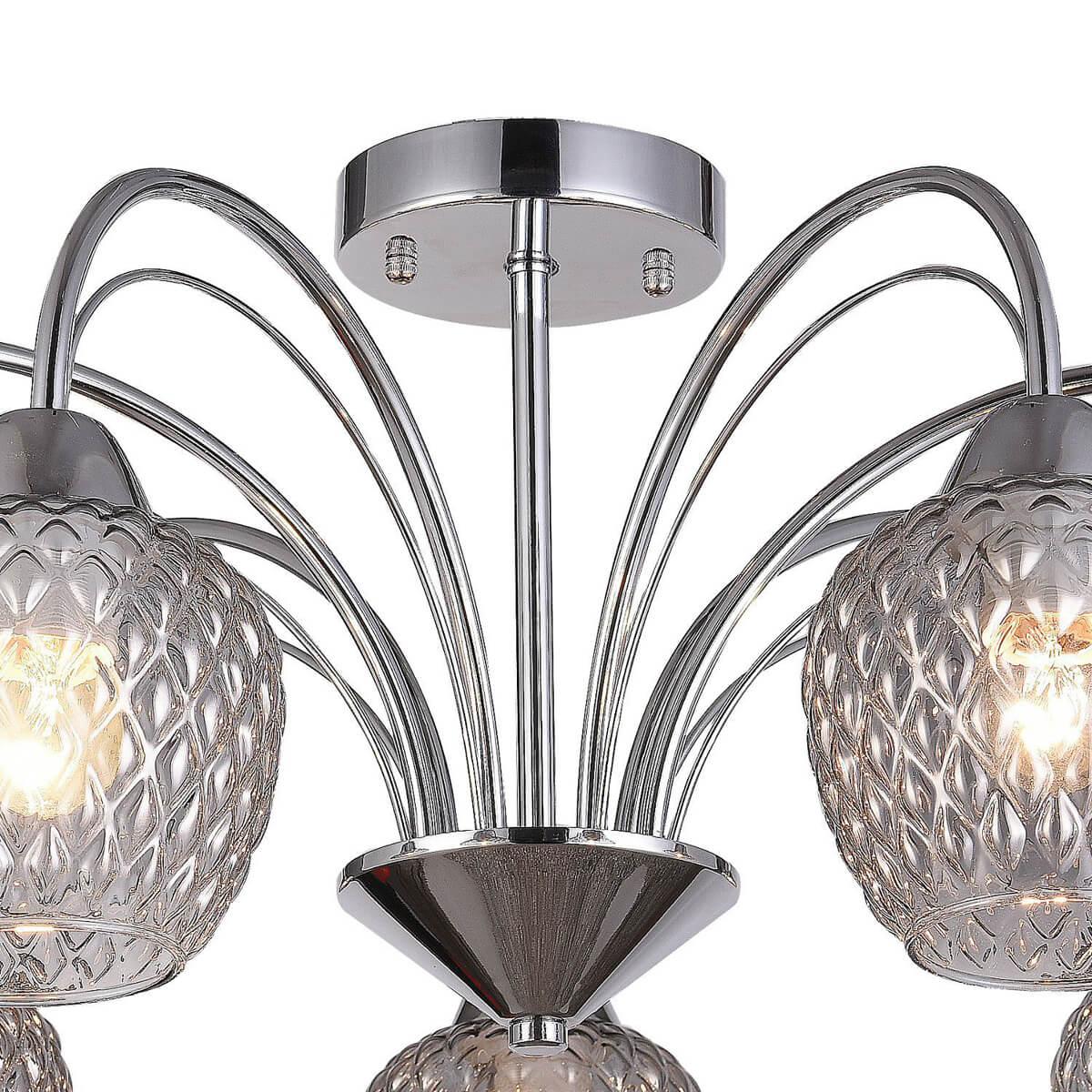 Основание люстры выполнено из металла с отделкой под хром, что придает изделию дополнительную прочность и долговечность. Установка данной люстры производится на потолок. Степень защиты IP20 обеспечивает безопасность использования внутри помещения.