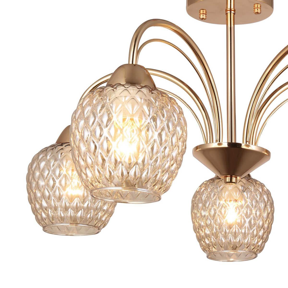 Потолочная люстра F-Promo Olimp 2541-5U - это элегантное и стильное освещение для спальни, произведенное в Германии. Люстра из коллекции Olimp имеет современный дизайн, который подойдет для любого интерьера.Этот светильник оснащен пятью лампами с цоколем E27 и общей мощностью 300 Вт. Высота люстры составляет 330 мм, диаметр - 580 мм. Плафон и абажур выполнены из стекла янтарного цвета, что придает освещению теплоту и уют. Основание из металла имеет золотистый оттенок, что добавляет изысканности и роскоши.