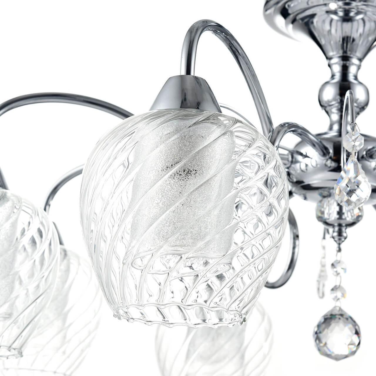 Цвет хрома основания и прозрачный цвет плафона создают элегантный и современный облик люстры. Установка осуществляется на потолок, а степень защиты IP20 гарантирует безопасность использования внутри помещения.