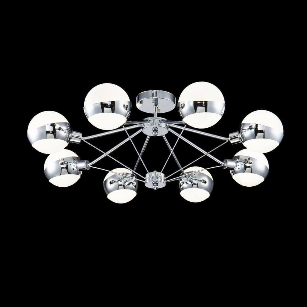 Потолочная люстра Freya Silvia FR5009CL-08CH - это элегантное и стильное освещение для гостиной, произведенное в Германии. Люстра из коллекции Silvia имеет современный хай-тек стиль и отличается высоким качеством материалов и изготовления.Этот светильник имеет восемь цоколей E14, предназначенных для ламп накаливания мощностью до 60 Вт каждая. Общая мощность люстры составляет 480 Вт. Плафон и абажур изготовлены из стекла белого цвета, что придает освещению мягкий и приятный оттенок. Диаметр плафона составляет 752 мм, а высота - 290 мм.