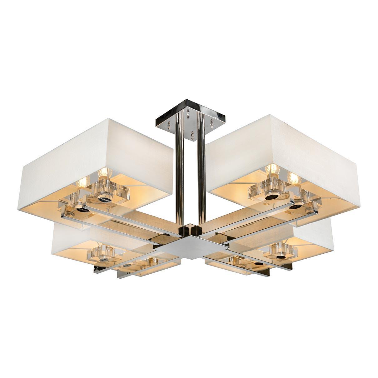 Потолочная люстра iLamp Play DJ0108 CR - это стильное и современное освещение для гостиной, произведенное в Италии. Люстра имеет 8 лампочек с цоколем E14 и общей мощностью 320 Вт. Материал плафона и абажура - ткань, что придает освещению нежный и элегантный вид. Высота люстры составляет 410 мм, а форма плафона - прямоугольная.Цвет плафона и абажура - белый, что создает светлое и уютное освещение в помещении. Основание люстры выполнено из металла с отделкой под хром, что придает изделию дополнительный блеск и элегантность. Напряжение работы люстры - 230 В, степень защиты IP20.