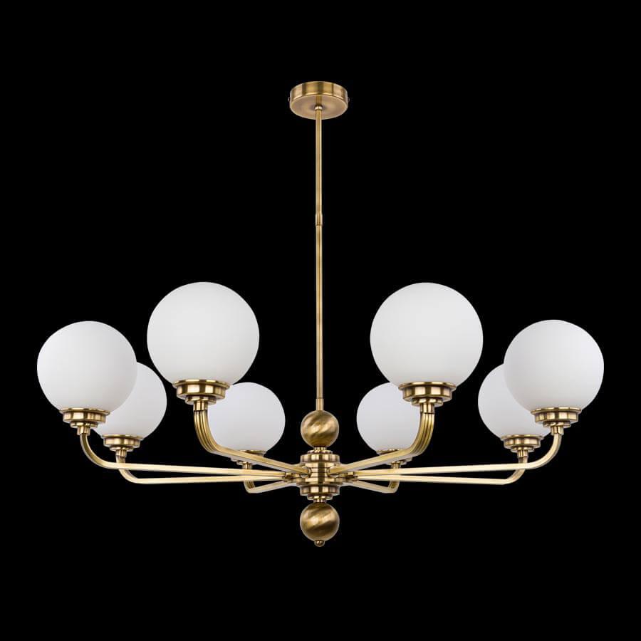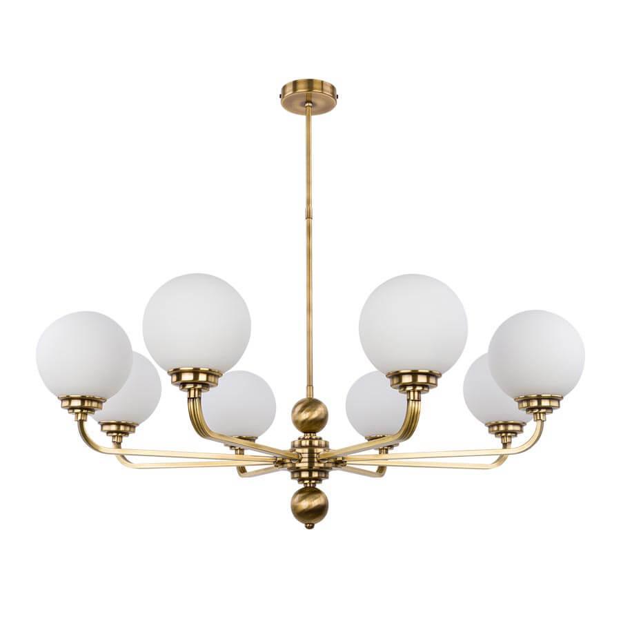 Потолочная люстра Kutek Mood Abano ABA-ZW-8 (P) - это элегантное и стильное освещение для спальни, которое добавит уют и комфорт в интерьер помещения. Бренд Kutek из Польши предлагает эту потолочную люстру с артикулом ABA-ZW-8(P), которая станет прекрасным дополнением к любому современному или классическому дизайну.Люстра имеет 8 плафонов из стекла, окрашенных в белый цвет, что придает освещению мягкость и приглушенность. Диаметр плафона составляет 850 мм, а высота - 450 мм. Основание выполнено из латуни в бронзовом цвете, что придает изделию изысканный вид.