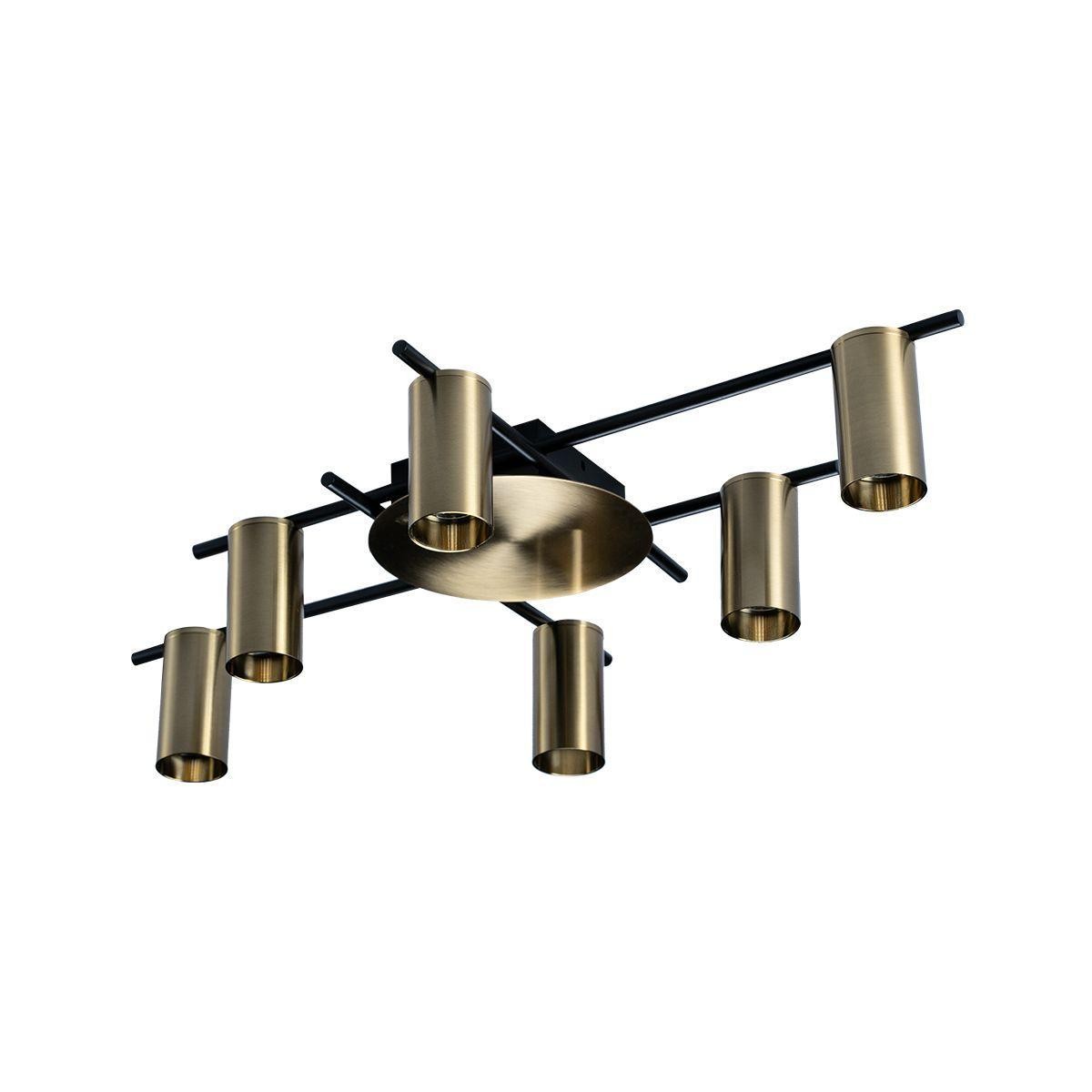 Потолочная люстра Loft IT Tribes 8120C-6 - это стильный и функциональный элемент интерьера, который отлично подойдет для кухни в скандинавском стиле. Бренд Loft IT известен своим качеством и оригинальным дизайном, а модель 8120C-6 из коллекции Tribes не исключение.Люстра имеет 6 галогеновых ламп с цоколем GU10 и общей мощностью 240 Вт, что обеспечивает яркое и равномерное освещение помещения. Материал плафона и абажура - металл, что придает изделию прочность и долговечность. Цвет плафона золотой, а основание выполнено в черном цвете, что создает стильный контраст и придает люстре элегантный вид.