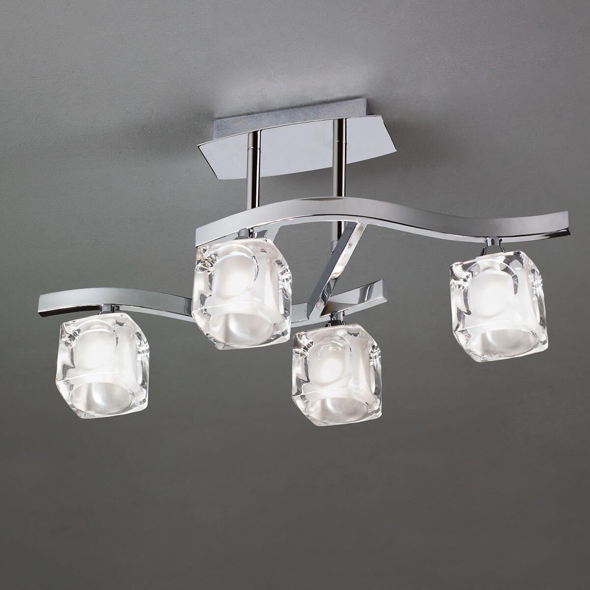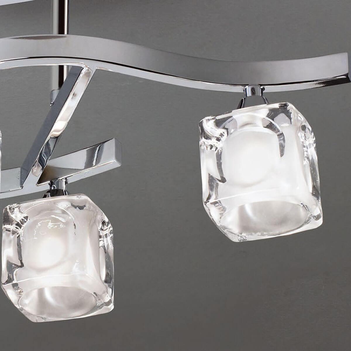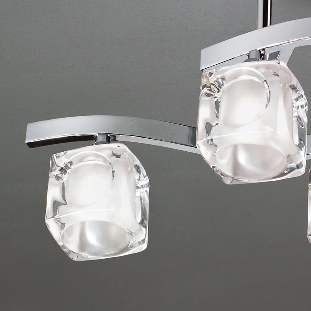 Плафон и абажур изготовлены из прозрачного стекла, что придает люстре легкость и изящность. Основание выполнено из металла с отделкой под хром, что придает ему современный и стильный вид.