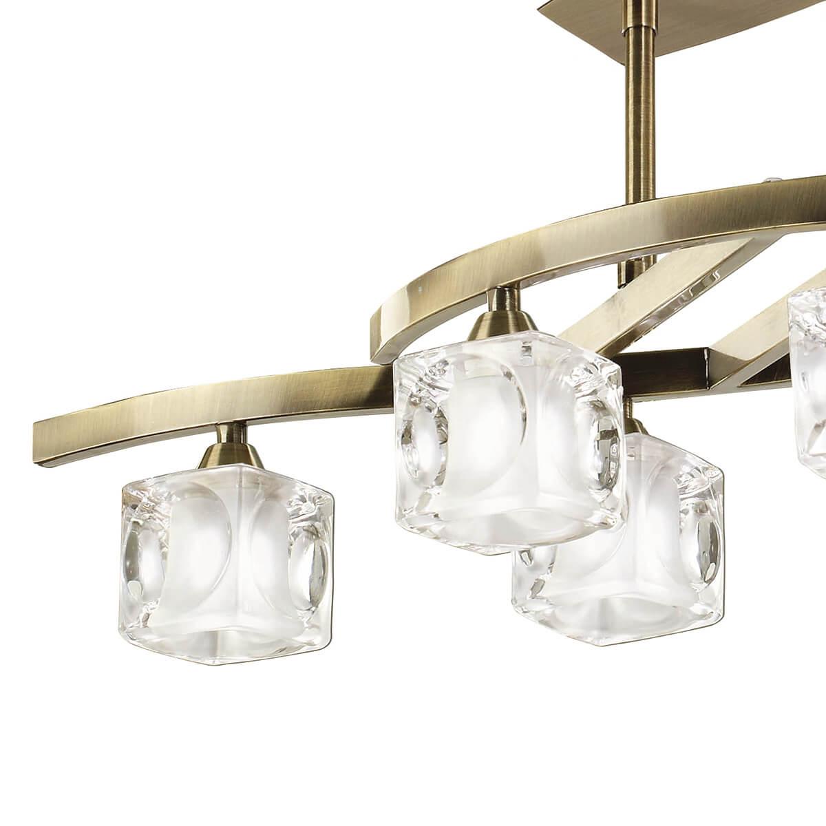 Потолочная люстра Mantra Cuadrax 0990 - это элегантное и стильное освещение для гостиной, созданное изысканным испанским брендом Mantra. Люстра из коллекции Cuadrax имеет современный дизайн, который подойдет для интерьера в современном стиле.Этот светильник оснащен шестью светодиодными лампами с цоколем G9 и общей мощностью 30 Вт. Высота люстры составляет 260 мм, а материал плафона изготовлен из стекла, что придает ему изысканный и изящный вид. Цвет плафона прозрачный, а основание выполнено из металла в бронзовом оттенке.