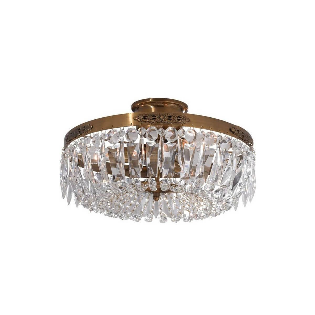 Сочетание хрустальных элементов с металлическим основанием делает эту люстру универсальной и подходящей для различных интерьеров. Диаметр плафона 360 мм, а высота 230 мм, что делает ее компактной и элегантной. Установка на потолок обеспечивает равномерное распределение света по всему помещению.