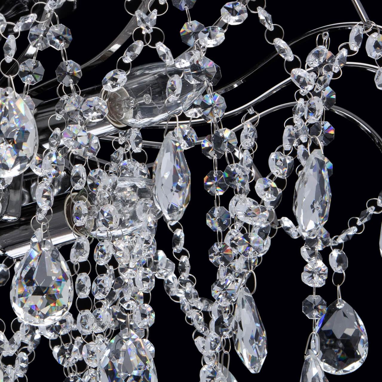 Сочетание хрусталя и металла создает эффектный декоративный элемент, который привлечет внимание и станет украшением любого интерьера. Люстра имеет диаметр 560 мм и высоту 380 мм, что позволяет установить ее на потолок и создать уютную атмосферу в комнате.