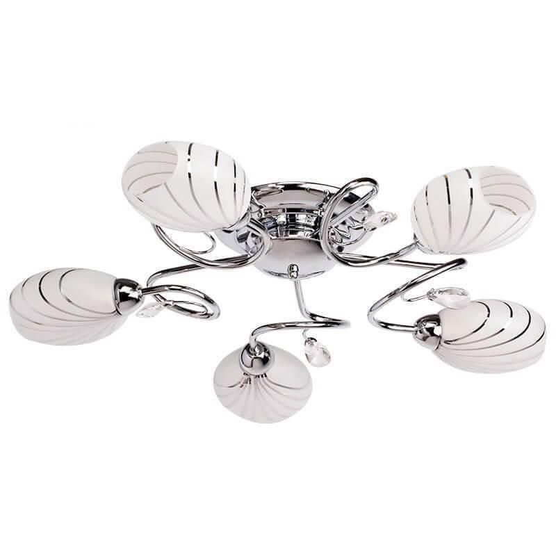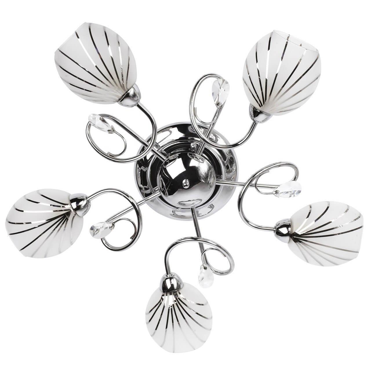 Люстра оснащена пятью лампами с цоколем E14 и общей мощностью 300 Вт, что обеспечивает достаточное освещение помещения. Диаметр плафона составляет 650 мм, а высота - 130 мм, что делает ее идеальным выбором для помещений с невысокими потолками.