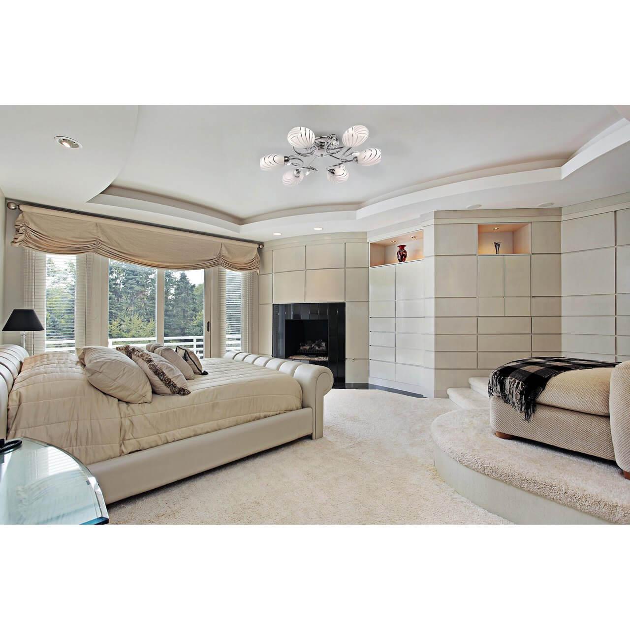 Потолочная люстра MW-Light Фиеста 267011806 - это элегантное и стильное освещение для гостиной в современном интерьере. Произведенная в Германии, данная люстра отличается высоким качеством материалов и изысканным дизайном.Люстра имеет шесть плафонов из стекла белого цвета, овальную форму и диаметр 670 мм. Основание из металла выполнено в хромированном цвете, что придает изделию дополнительный блеск и элегантность. Мощность каждой лампы составляет 60 Вт, общая мощность люстры - 360 Вт.