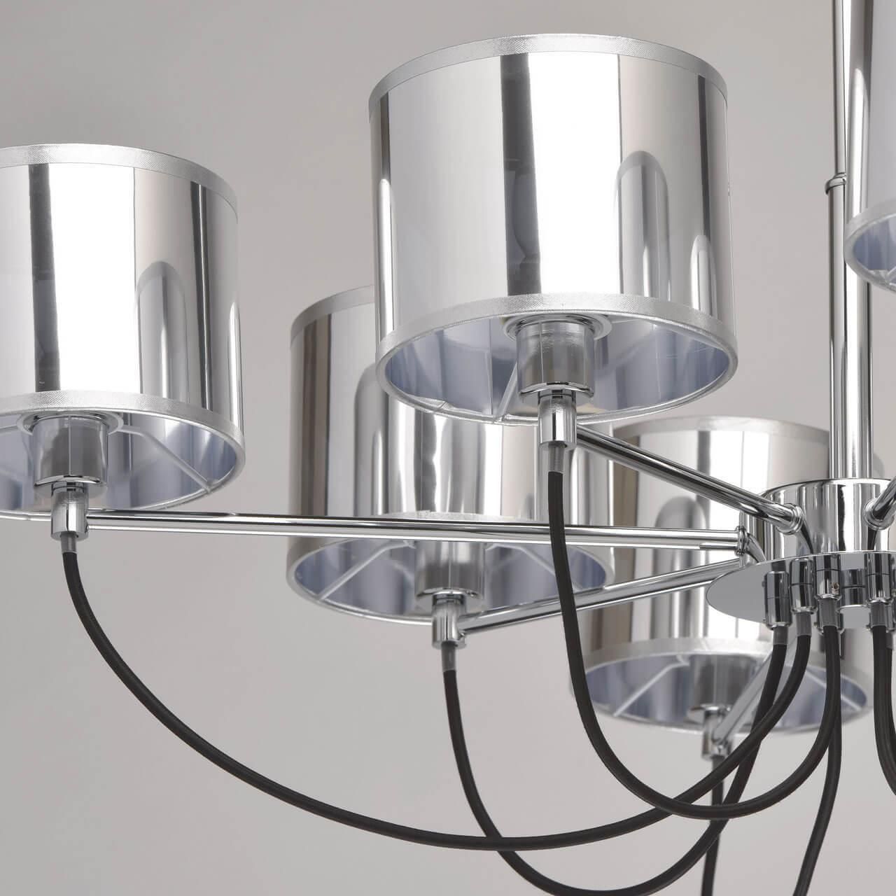 Стильный цилиндрический плафон и хромированное основание придают люстре современный вид, который легко впишется в любой интерьер. Диаметр люстры составляет 820 мм, а высота - 500 мм, что делает ее заметным элементом декора.