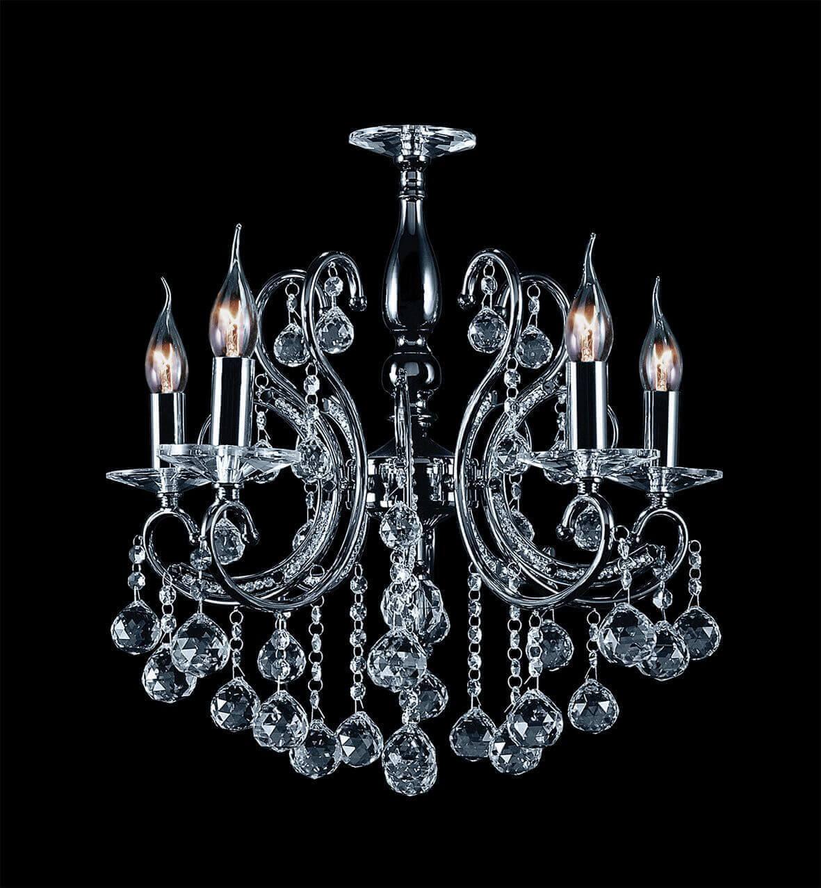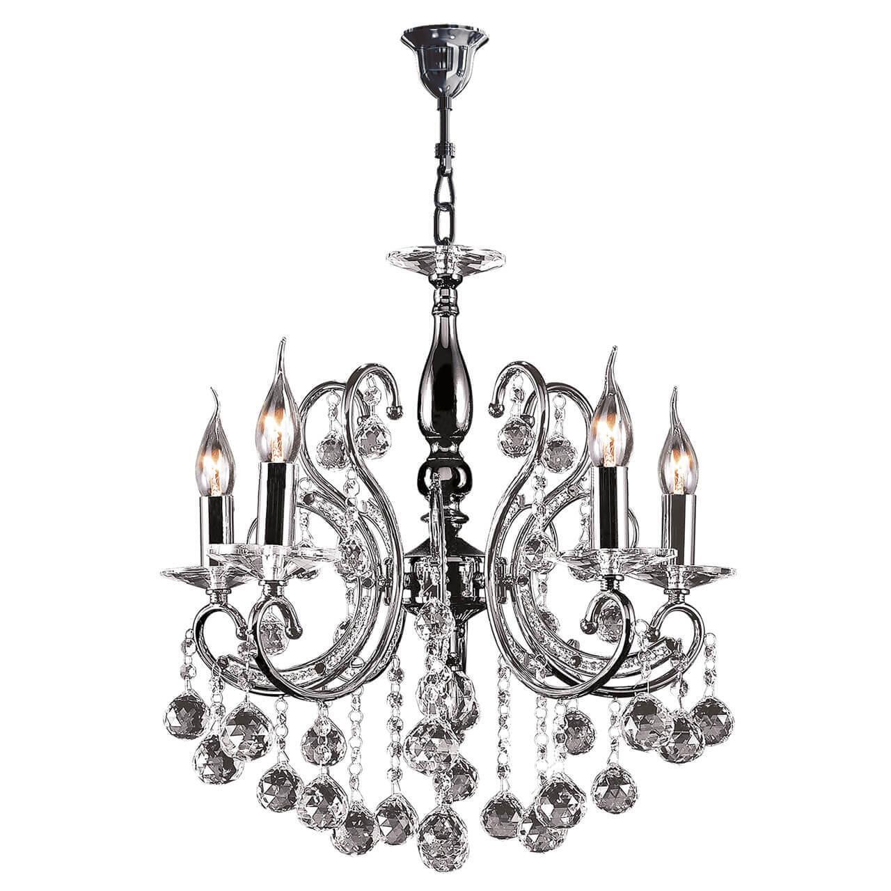 Мощность каждой лампы составляет 60 Вт, общая мощность люстры - 300 Вт. Лампочки с цоколем E14 обеспечивают яркое и приятное освещение помещения. Люстра устанавливается на потолок и имеет диаметр 520 мм, высоту 760 мм. Цветовое решение в хромированном исполнении придает изделию современный и стильный вид.