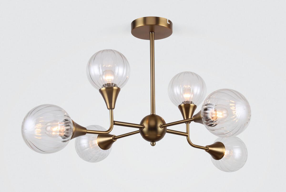 Плафон и абажур выполнены из стекла, что придает люстре изысканный и изящный вид. Цвет бронзы основания и прозрачный цвет плафона гармонично сочетаются между собой, создавая уютную атмосферу в комнате.