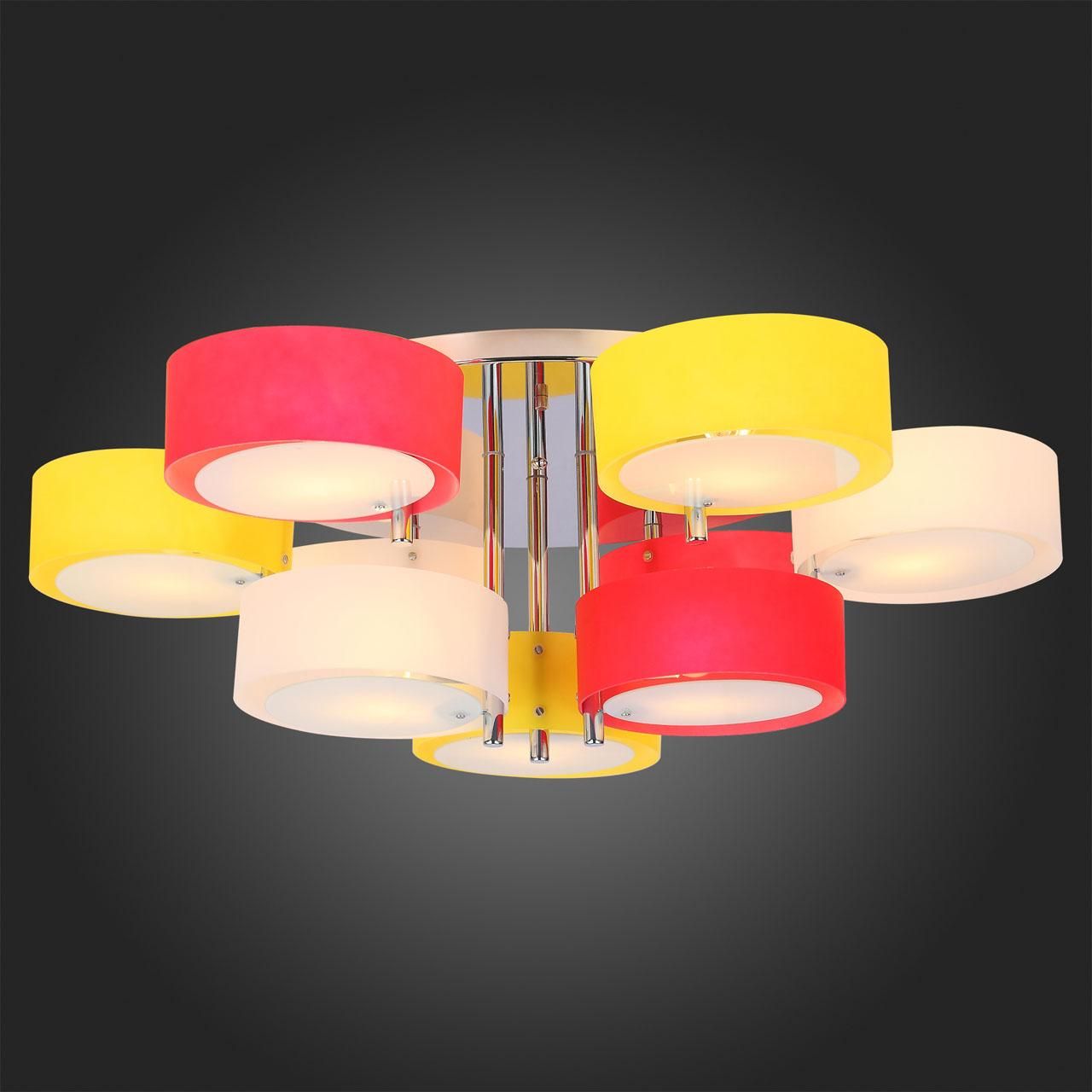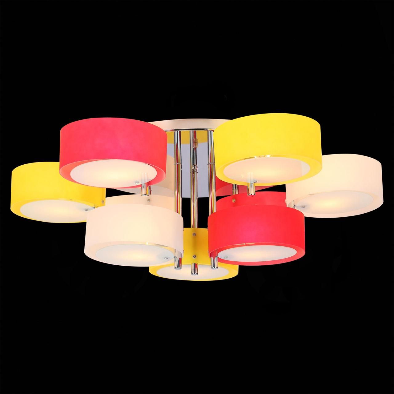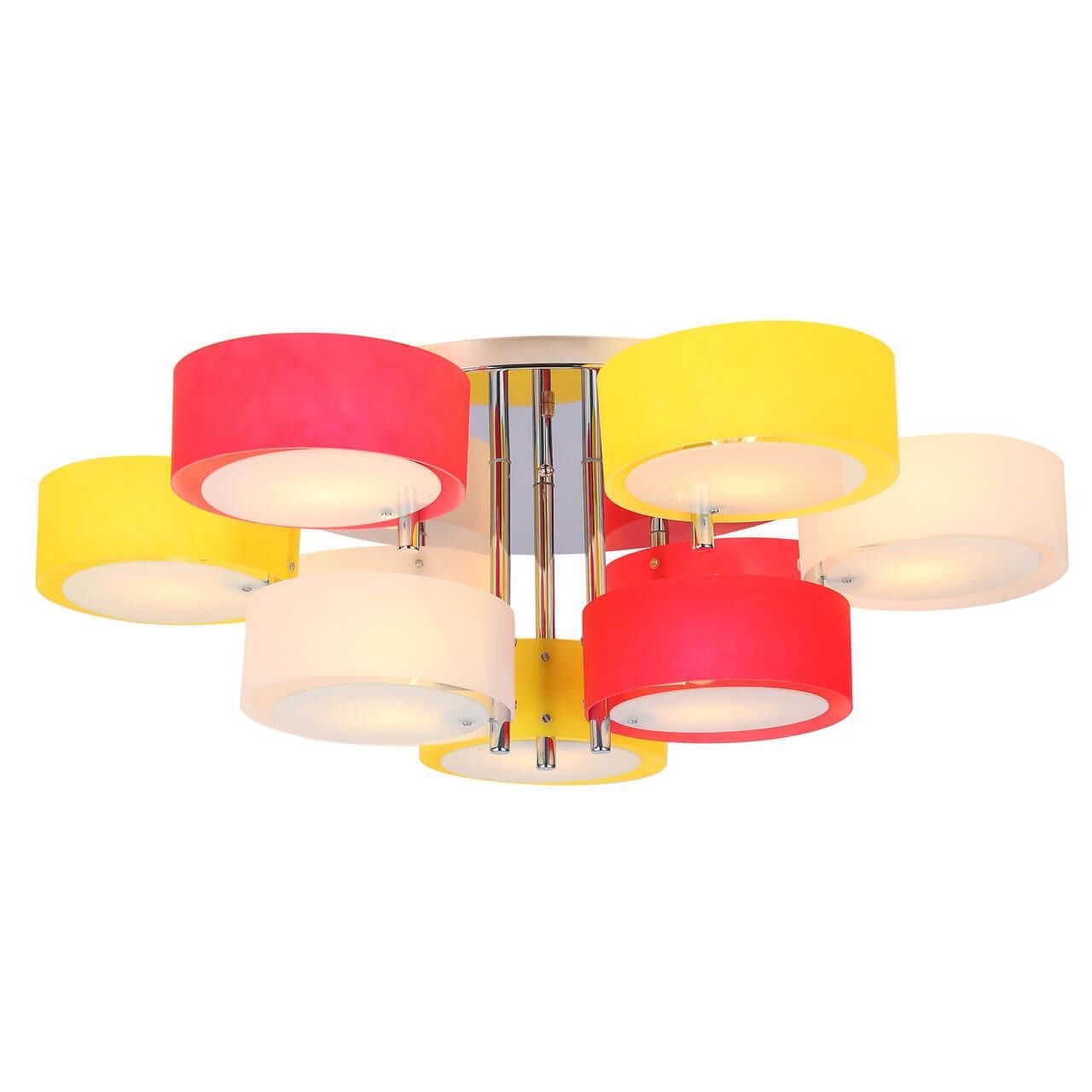 Цветовое решение люстры разноцветное, что добавляет игривости и оригинальности. Стильный цилиндрический формат плафона и хромированное основание придают изделию современный вид. Степень защиты IP20 гарантирует безопасность использования внутри помещения.