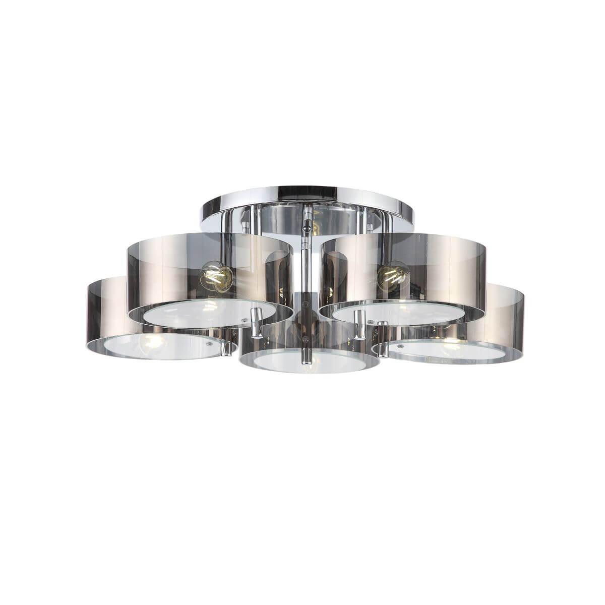 Потолочная люстра Evoluce Foresta SL483.702.05 - это стильное и современное освещение для кухни, произведенное в Италии. Люстра из коллекции Foresta имеет пять цилиндрических плафонов из акрила, окрашенных в дымчатый цвет. Основание из металла выполнено в хромированном цвете, что придает изделию элегантный вид.Люстра оснащена пятью цоколями E27 для ламп накаливания мощностью до 40 Вт каждая. Общая мощность освещения составляет 200 Вт. Диаметр плафона составляет 720 мм, а высота - 200 мм. Установка осуществляется на потолок.