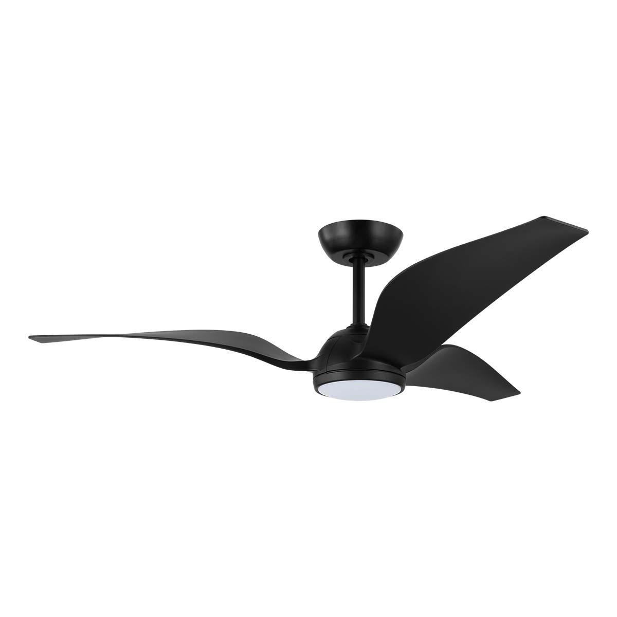 Материал плафона и абажура - пластик, что делает изделие легким и прочным. Цвет плафона - белый, основания - черный. Установка данной люстры-вентилятора производится на потолок. Степень защиты IP20 обеспечивает безопасность использования в помещении.