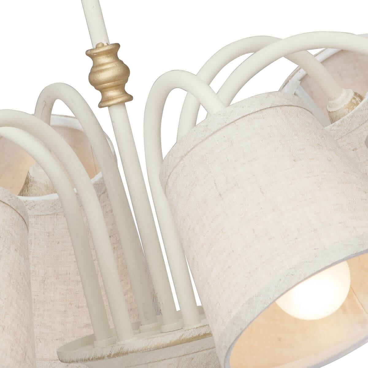 Установка люстры производится на потолок, а материал основания изготовлен из металла в бежевом цвете. Степень защиты IP20 гарантирует безопасность использования внутри помещения. Лампочки накаливания обеспечивают теплый свет, создавая уютную атмосферу в комнате.